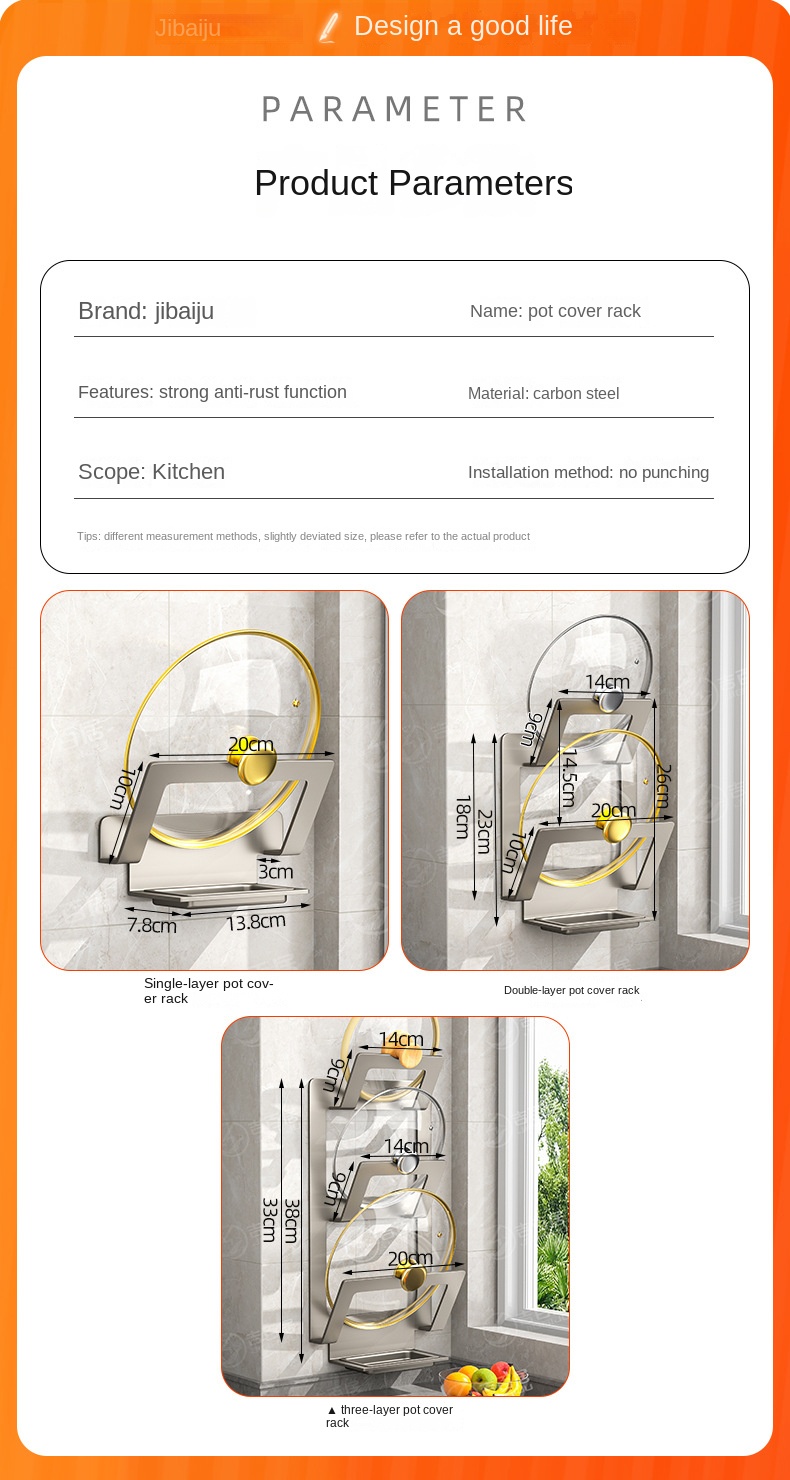 Modern Wall-Mounted Kitchen Rack with Material of Iron and Multiple Layer Options