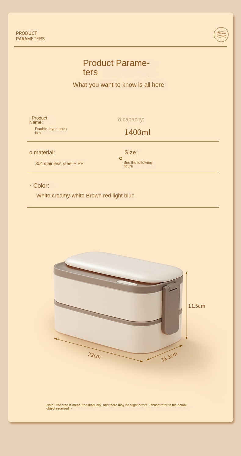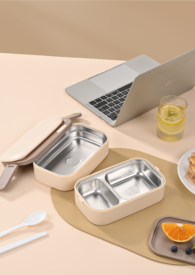 304 Stainless Steel Bento Box with Double Layer Compartments for Students and Working People