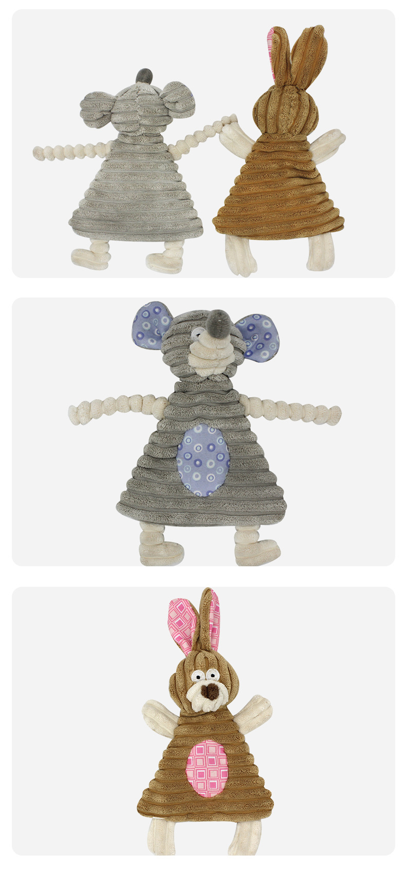 Two-Tone Plush Bunny & Mouse Toy - 21.5*14CM Pet Chew Toy