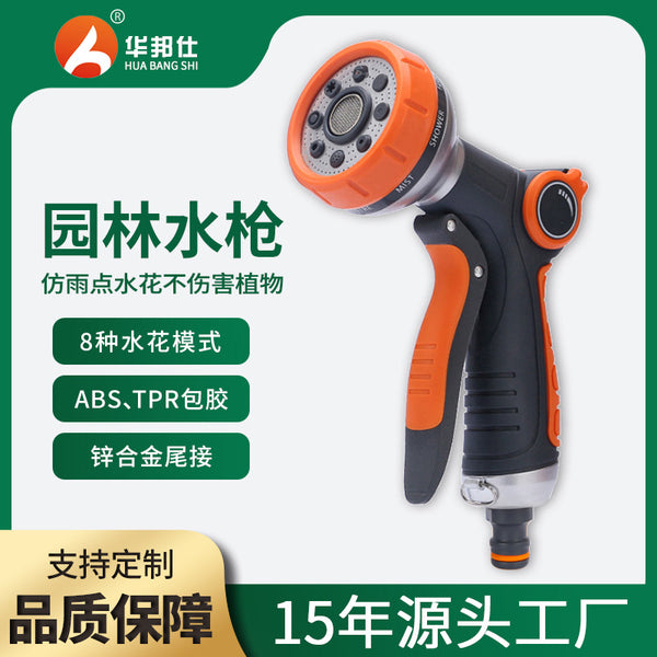 8-Function Garden Water Gun with 8 Pressure, 8-15 Distance and Steel Head Material