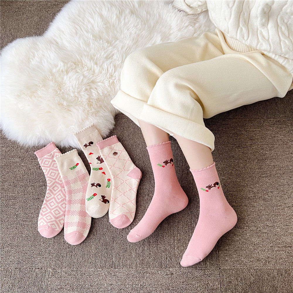 Thick Floor Socks for Women in Autumn and Winter Season with Butterfly Bow and Plush Material