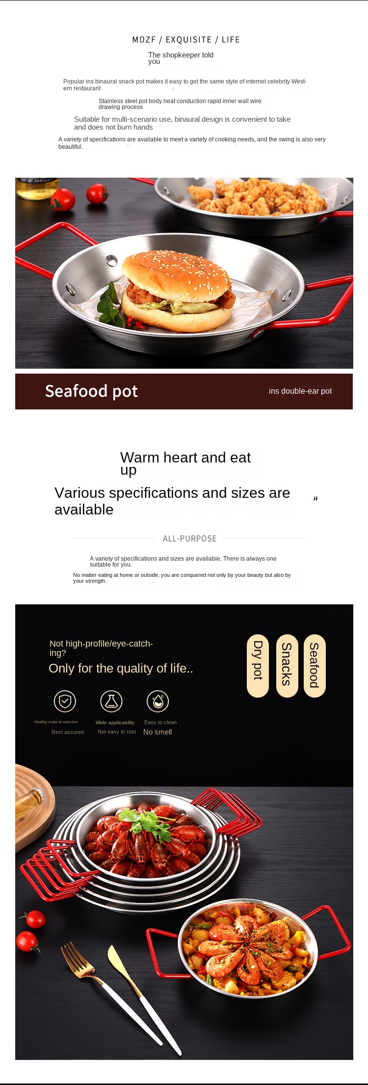 Spanish Double Ear Seafood Plate - Non-Stainless Steel Material - Suitable for Home and Restaurant - Modern and Simple Style - Round Shape - Microwave Safe - Applicable Scene: Hotel, Restaurant - Customizable Logo - Customizable Craftsmanship - Quality St