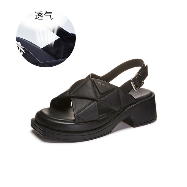 Women's Summer Sandal with PU Material, Low Heel and Buckle Closure