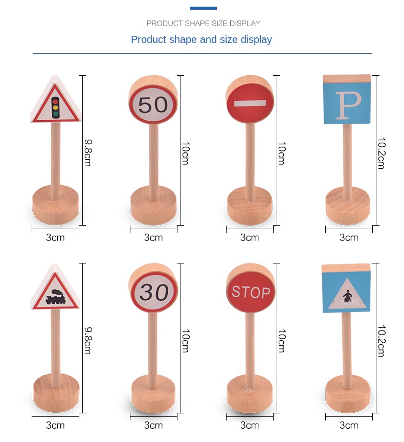 Children's Wooden Toy Road Traffic Sign Model with Wood Airplane and Car Early Education Cognitive Highway Sign