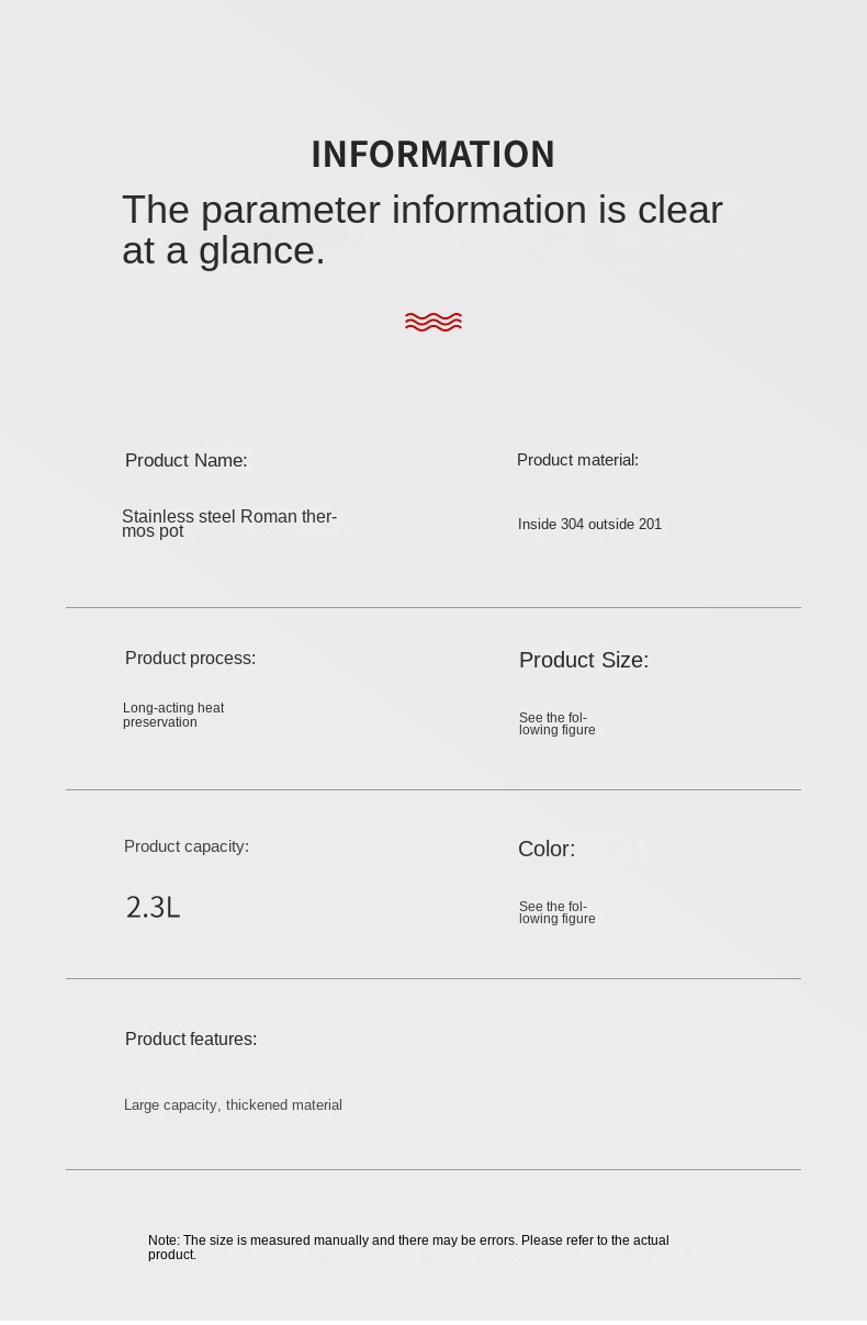 304 Stainless Steel Vacuum Roman Kettle, 2.3L Capacity, 12-24 Hours Cooling, Logo Printing Available