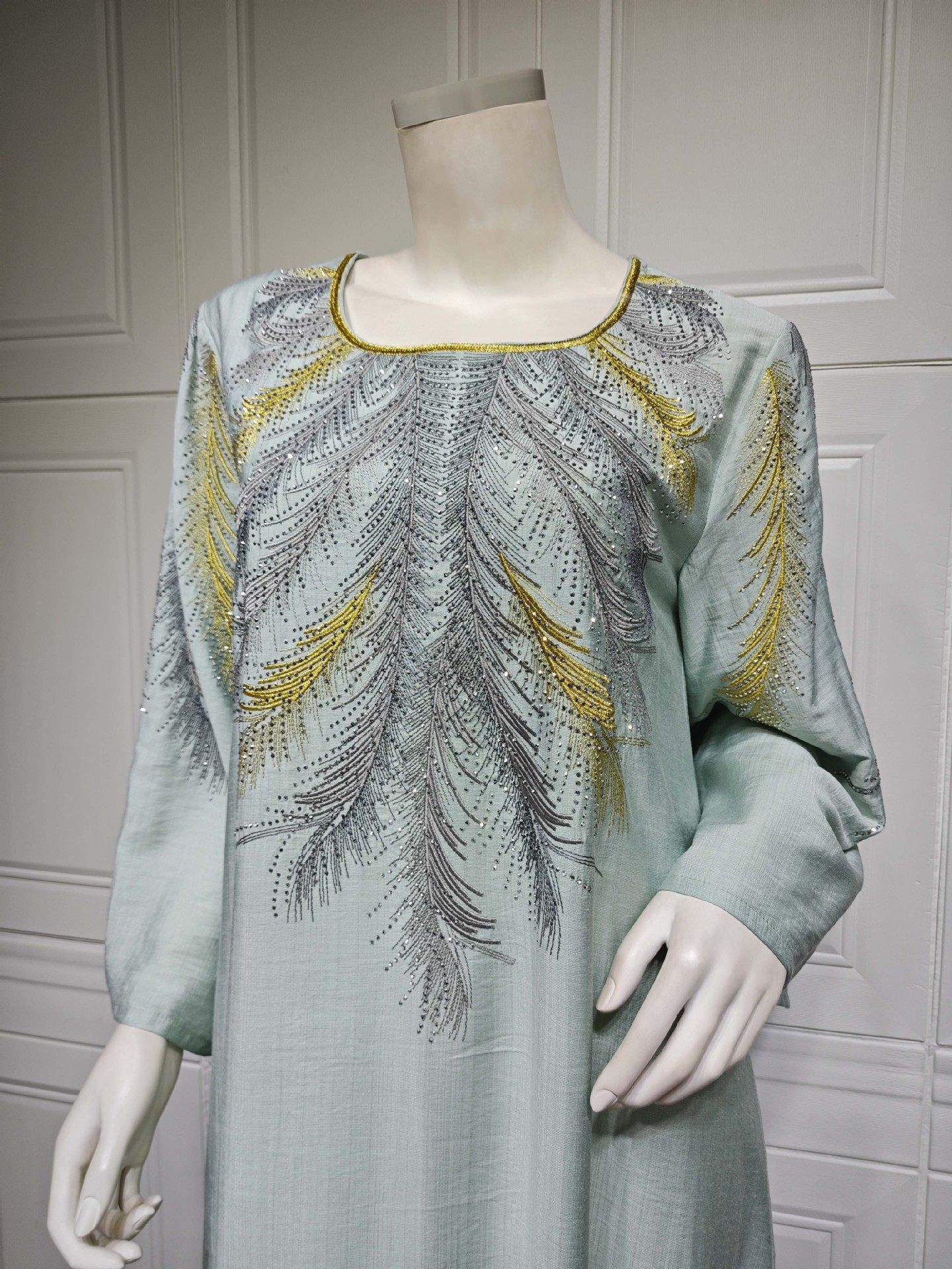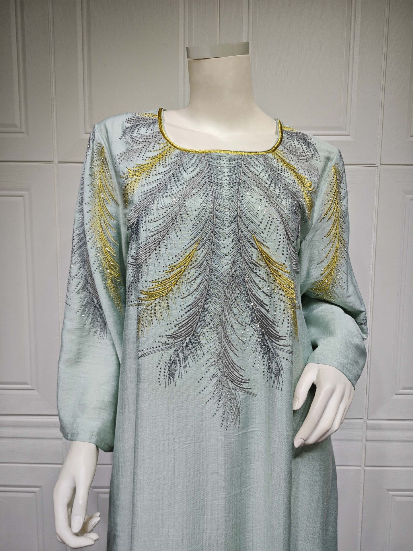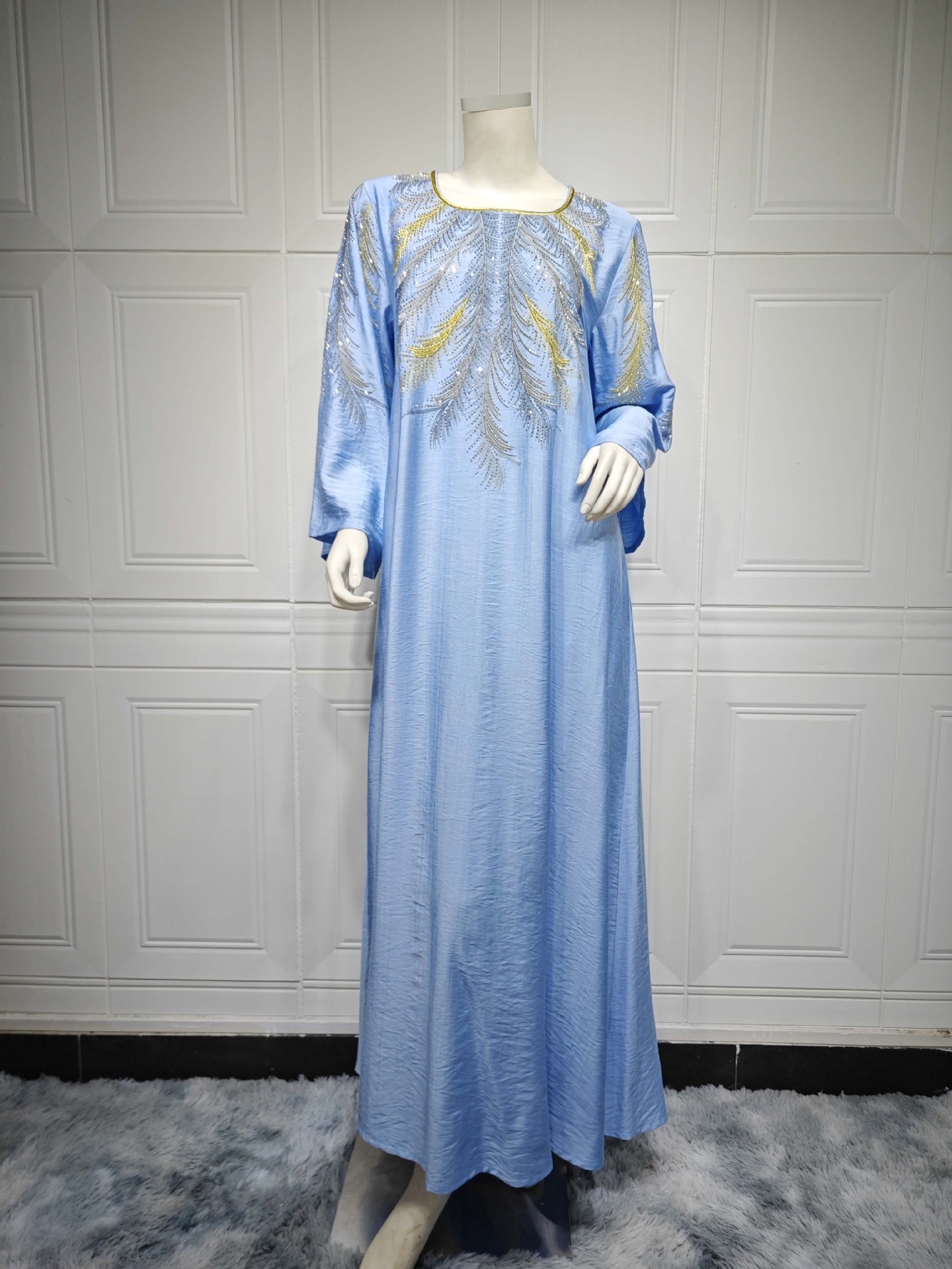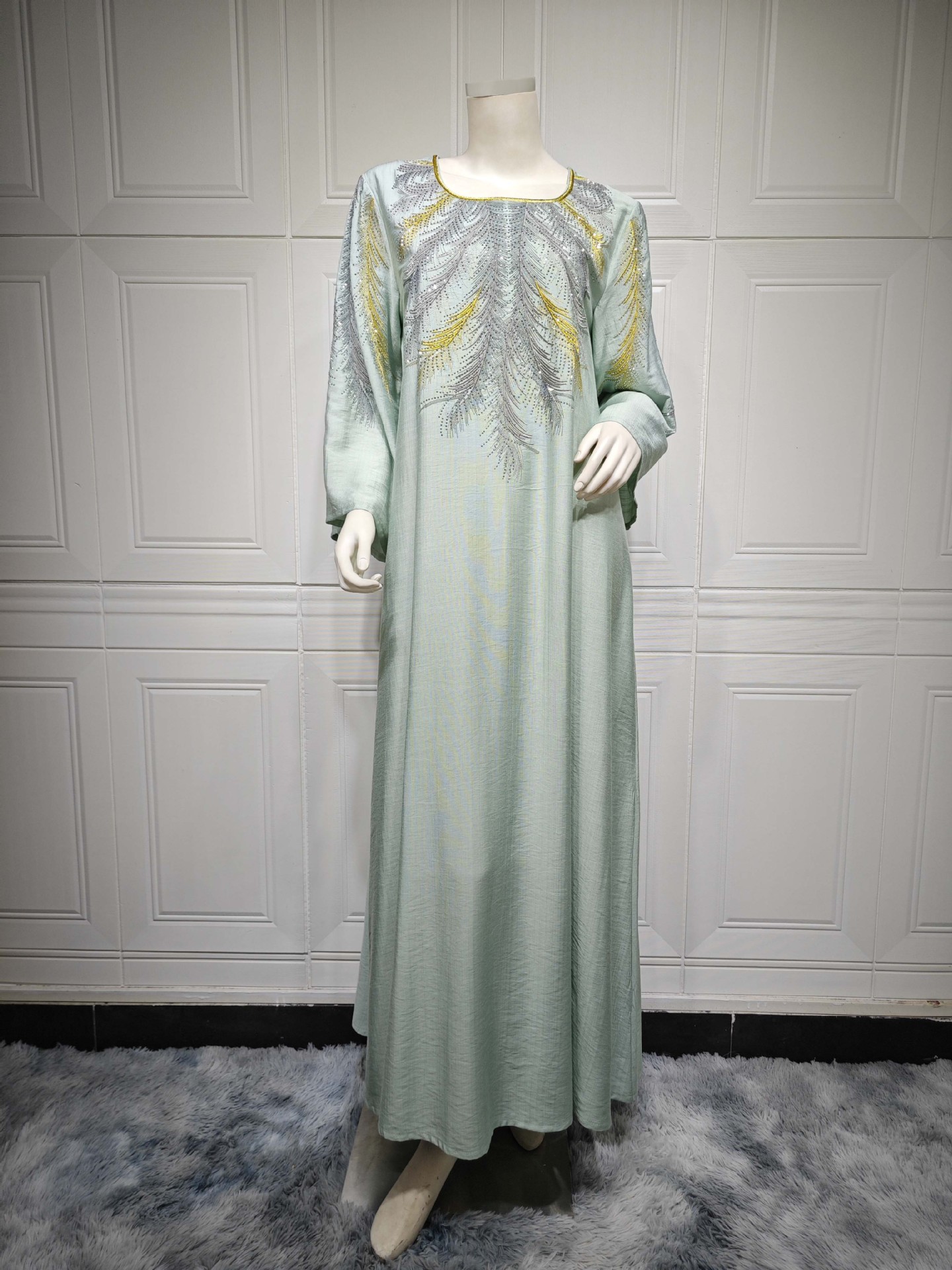 AB388 Middle Eastern New Muslim Embroidered Rhinestone Abaya Dress