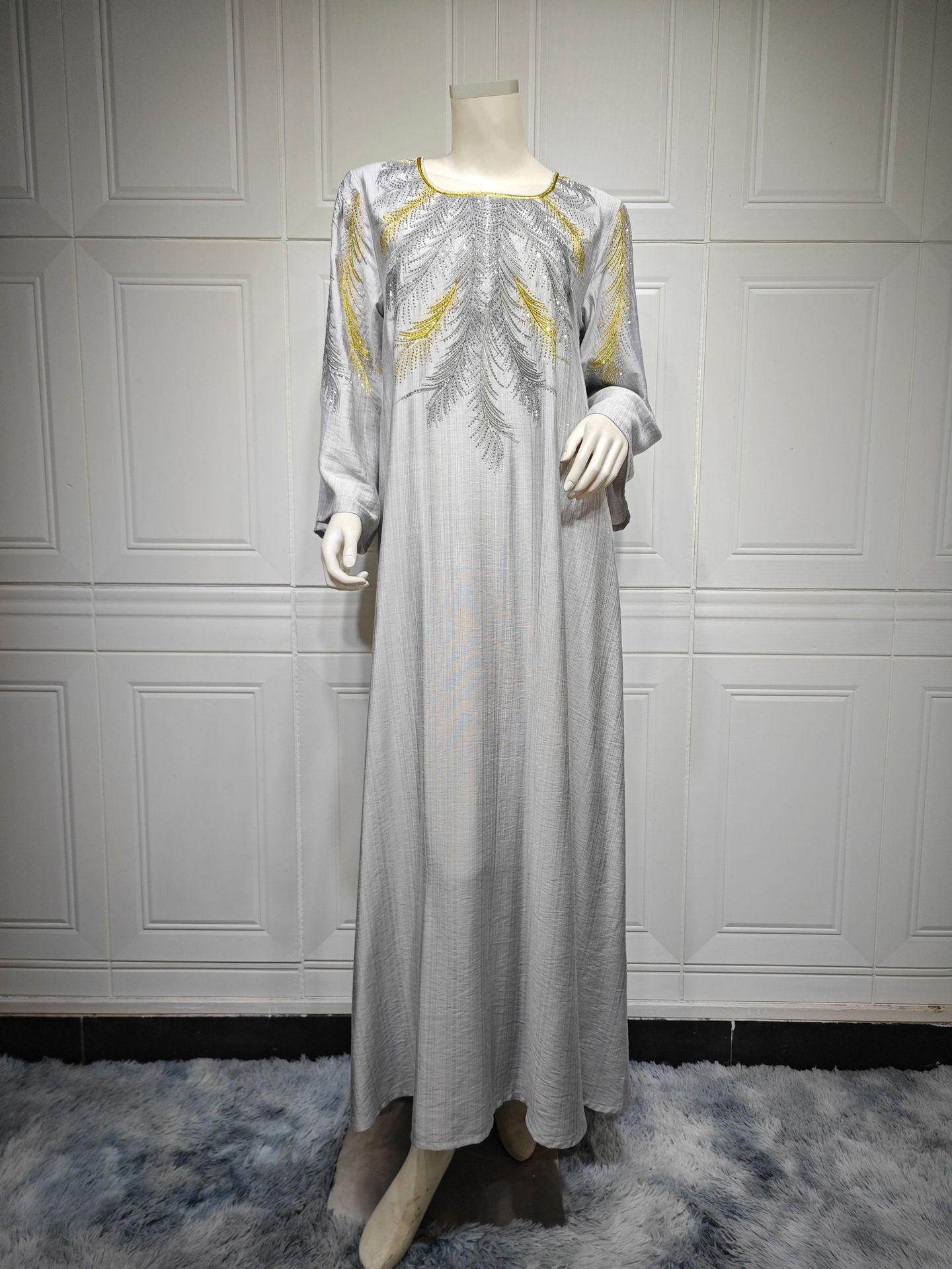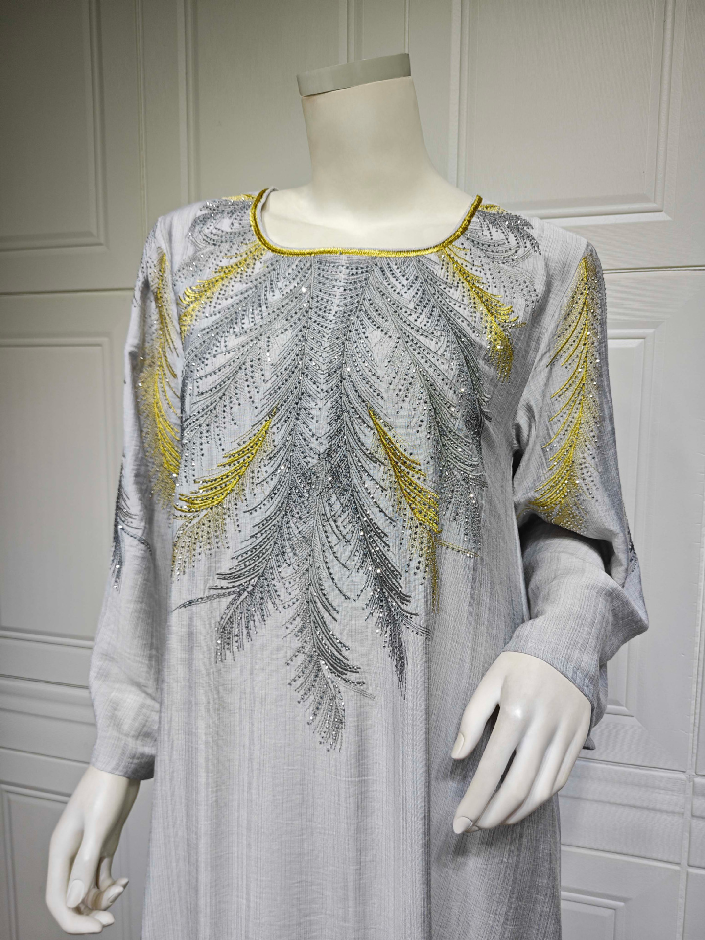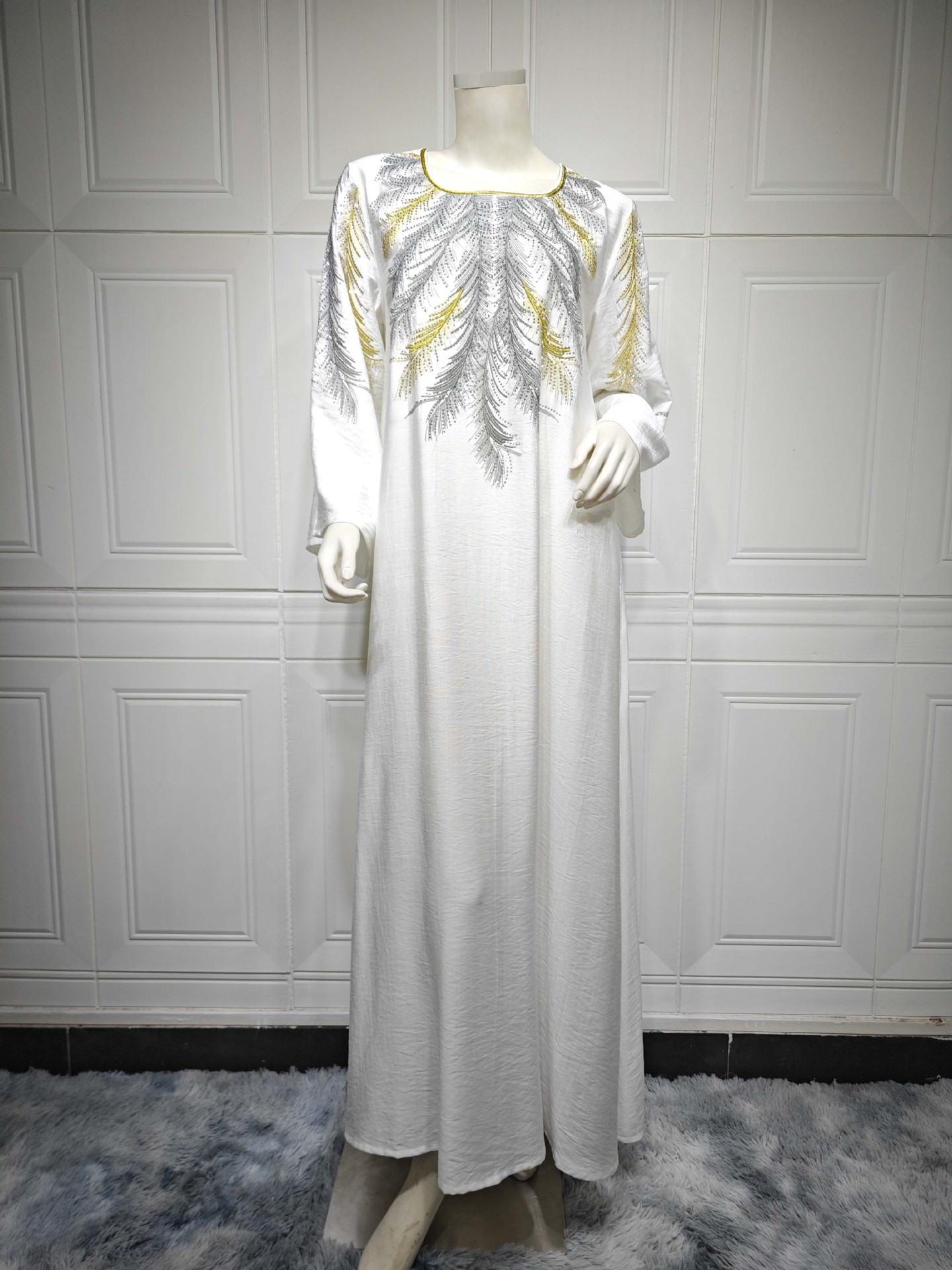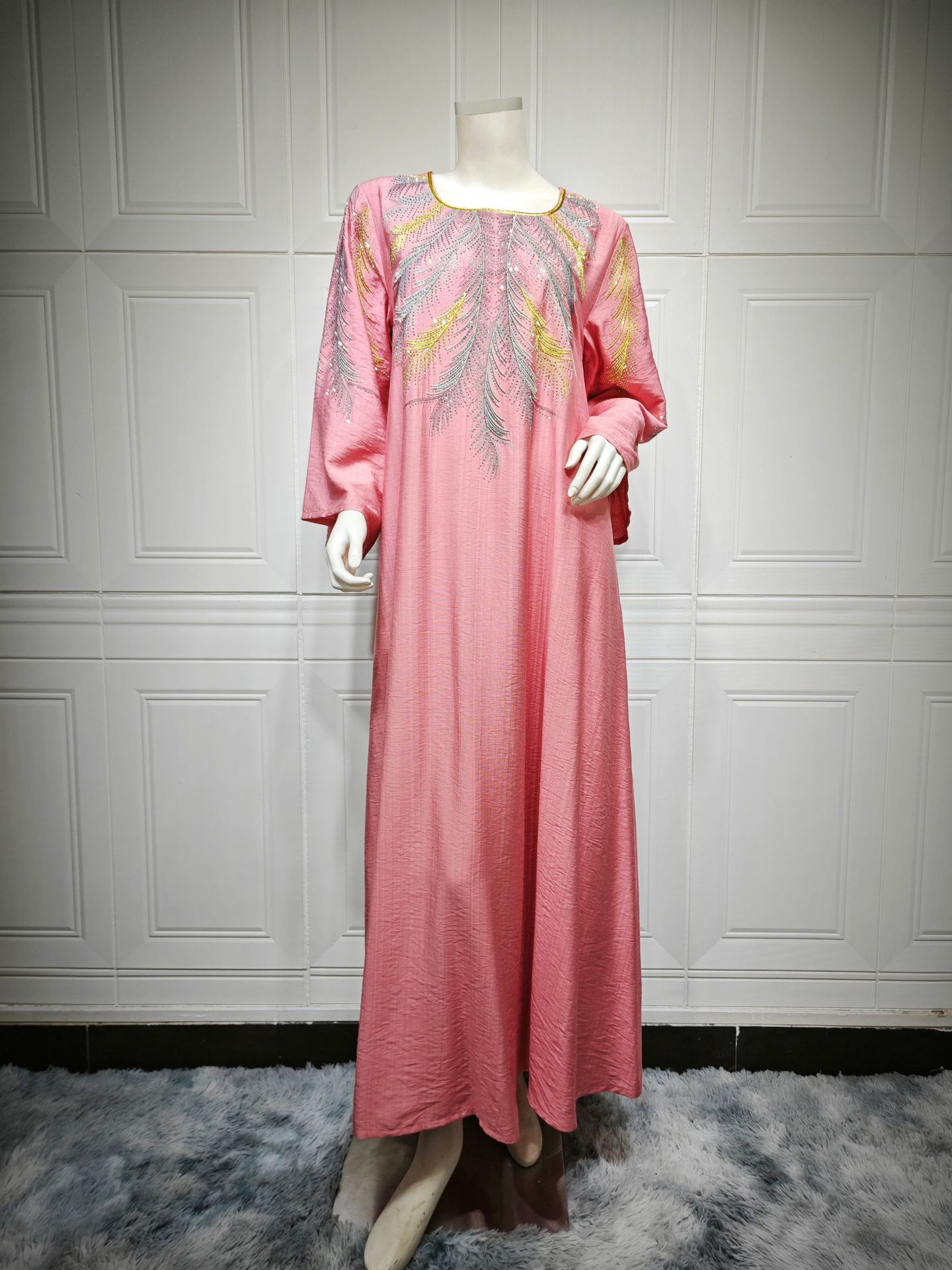 AB388 Middle Eastern New Muslim Embroidered Rhinestone Abaya Dress