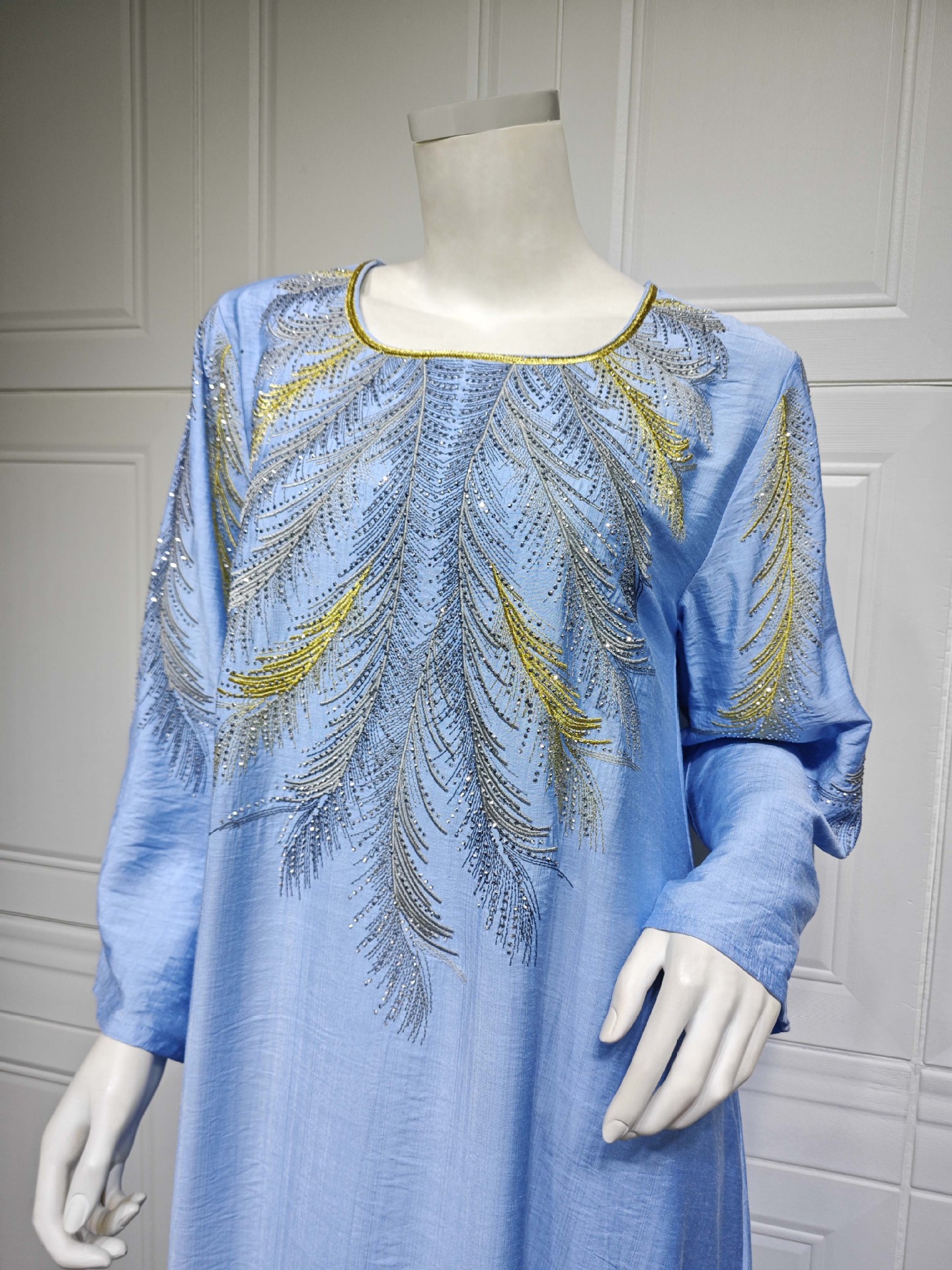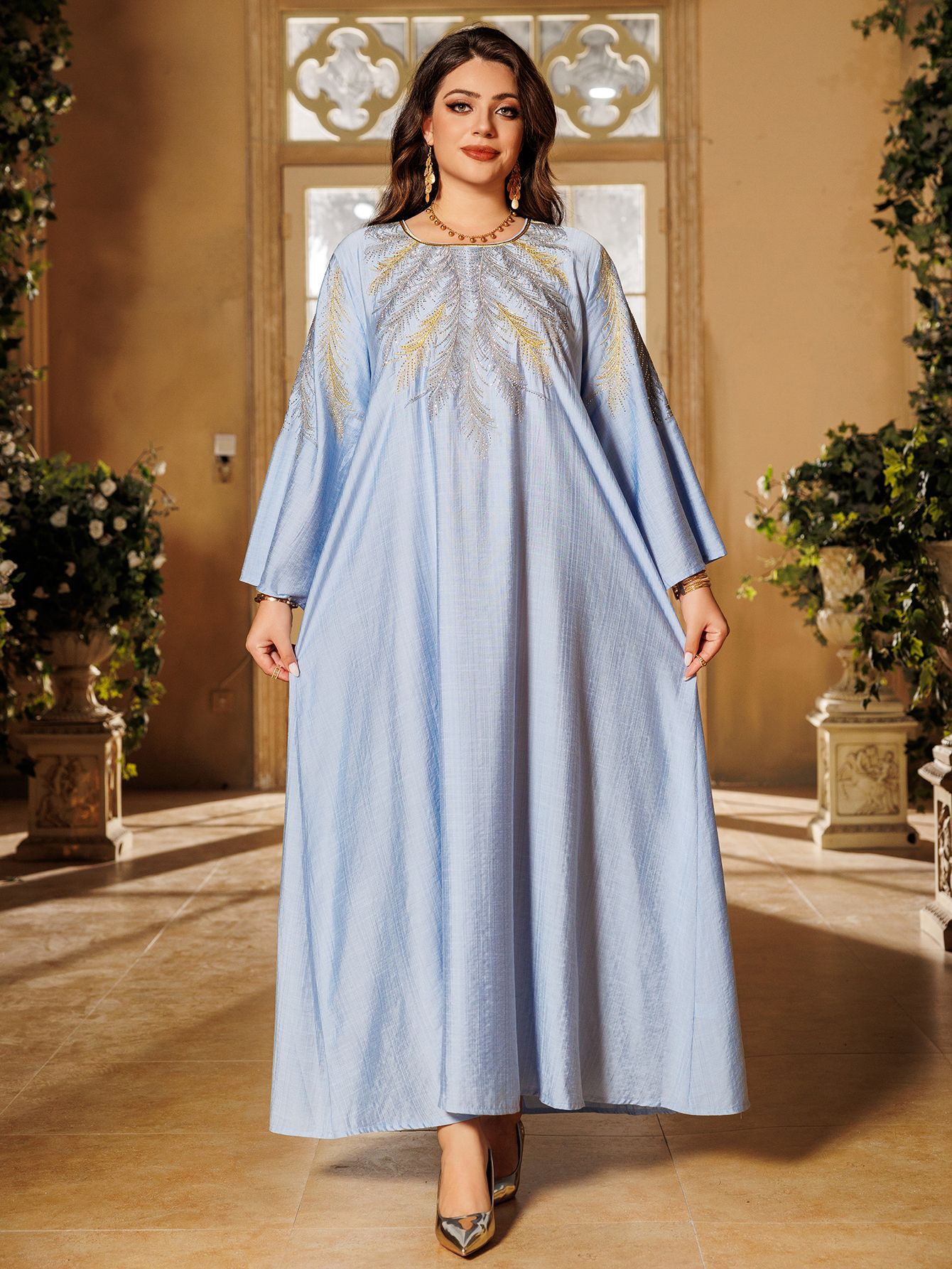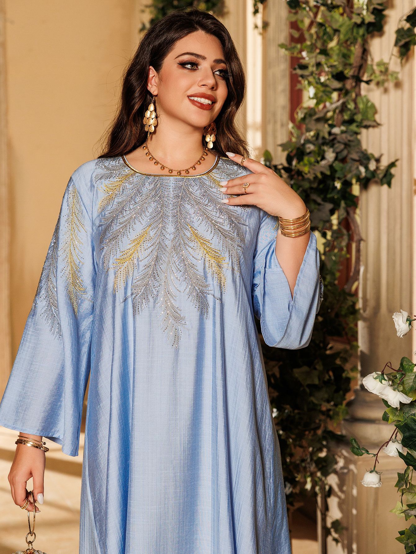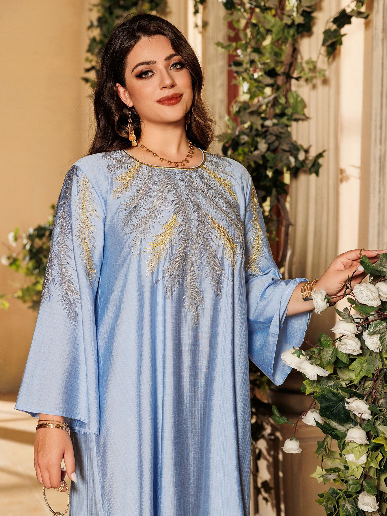 AB388 Middle Eastern New Muslim Embroidered Rhinestone Abaya Dress