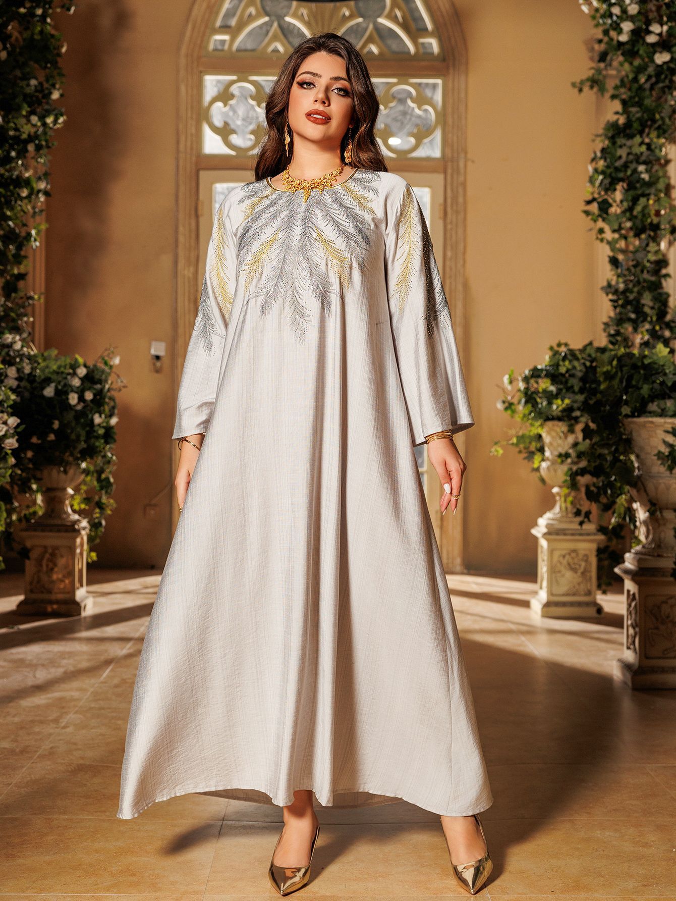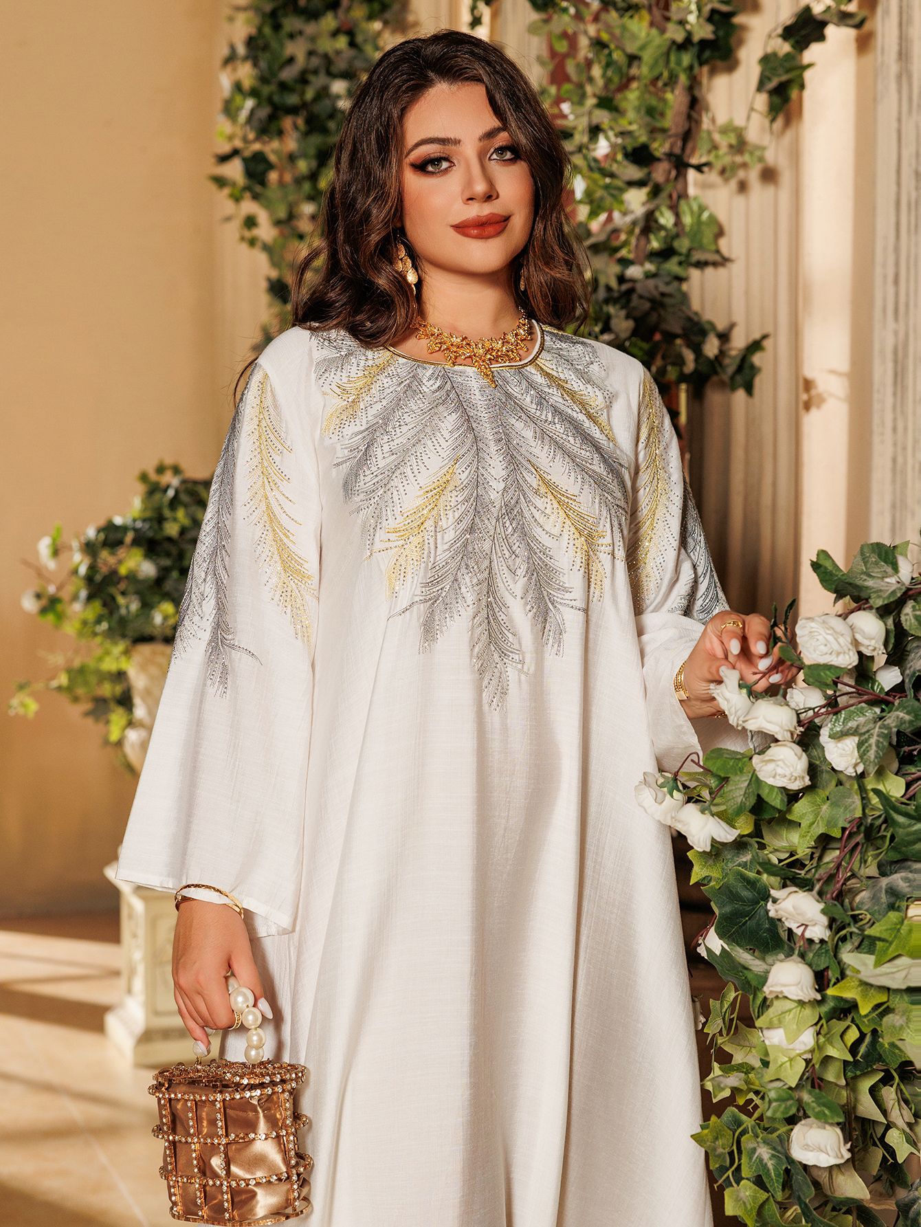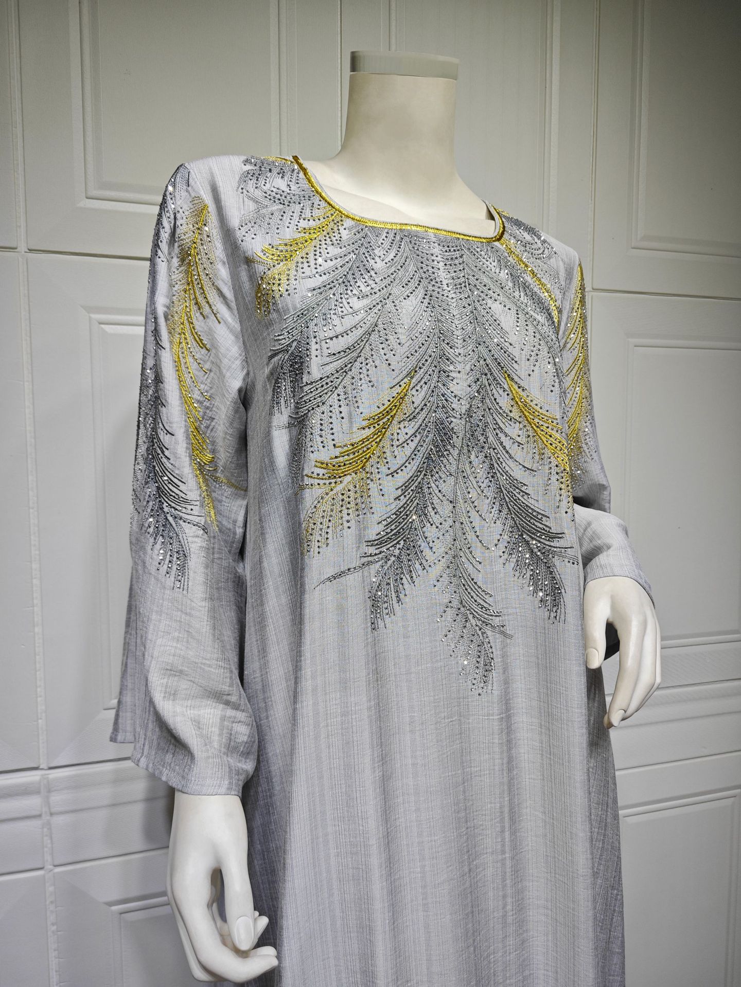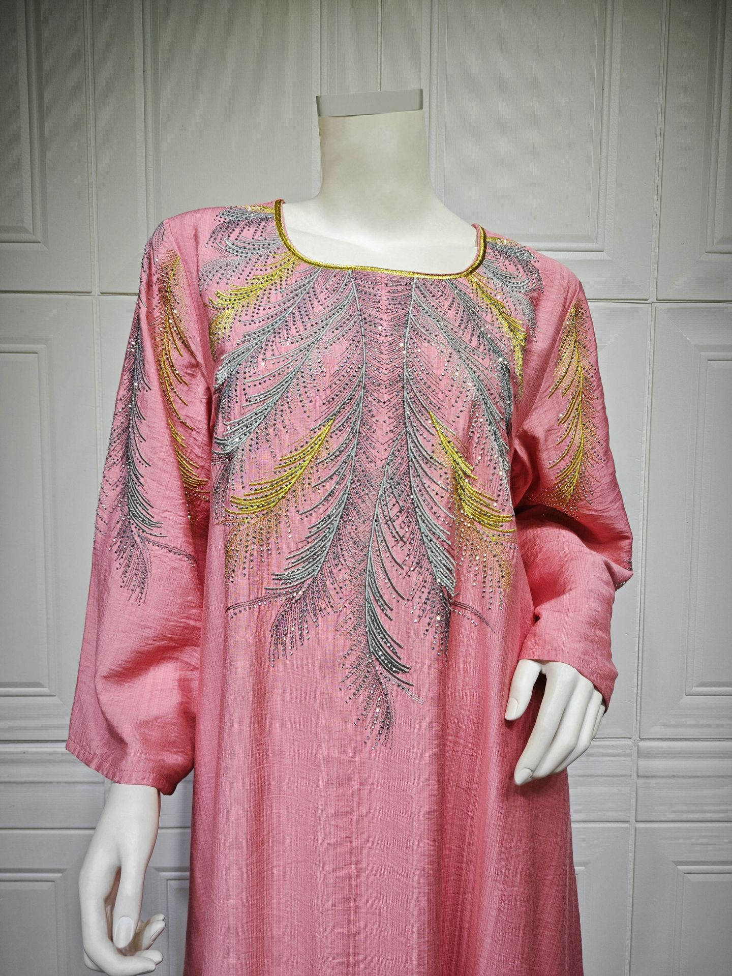 AB388 Middle Eastern New Muslim Embroidered Rhinestone Abaya Dress