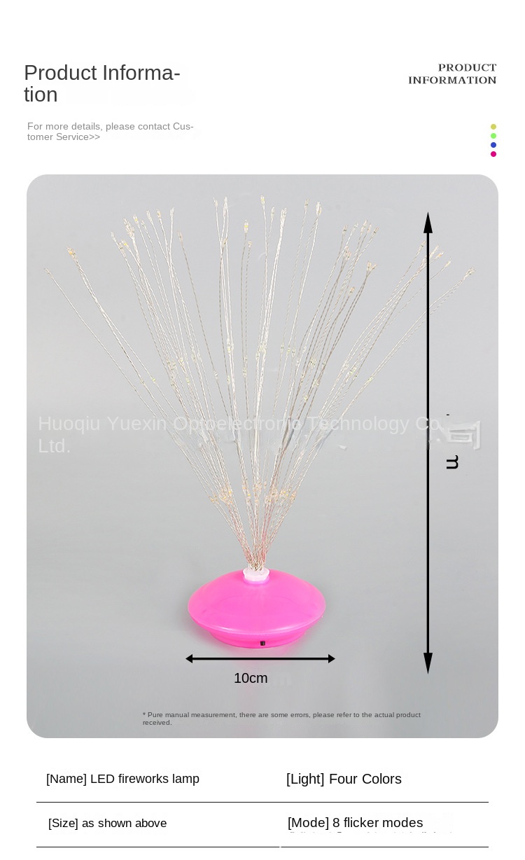 LED Flower Night Light with 10X30CM Size, Push-Button Type, Nickel-Plated Material and 36V Voltage