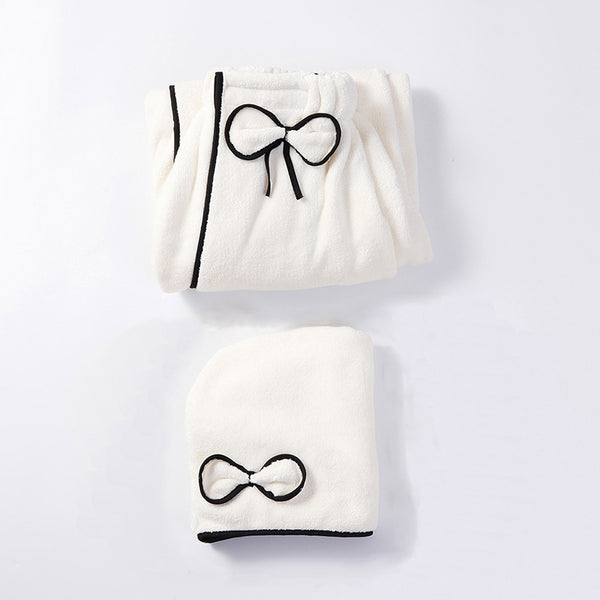 Women's Coral Fleece Bathrobe Set with Butterfly Bowknot and 80% Cotton Blend for Winter