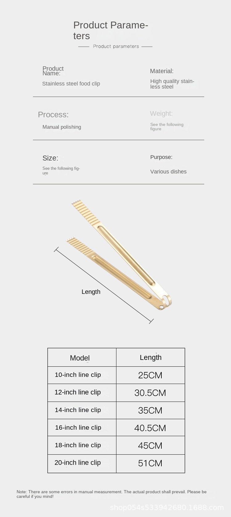 Korean Gold BBQ Clip, Multi-Functional, High Temperature Resistance, Food Grade 201 Stainless Steel