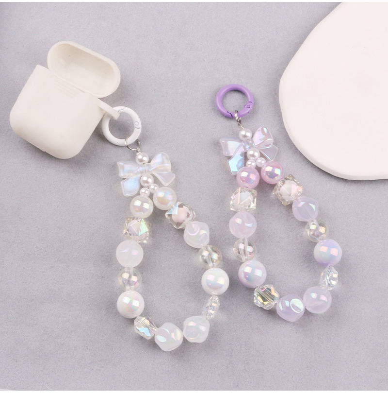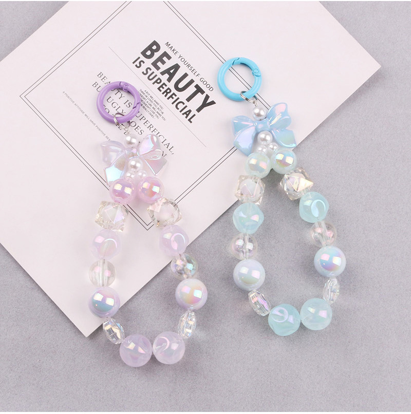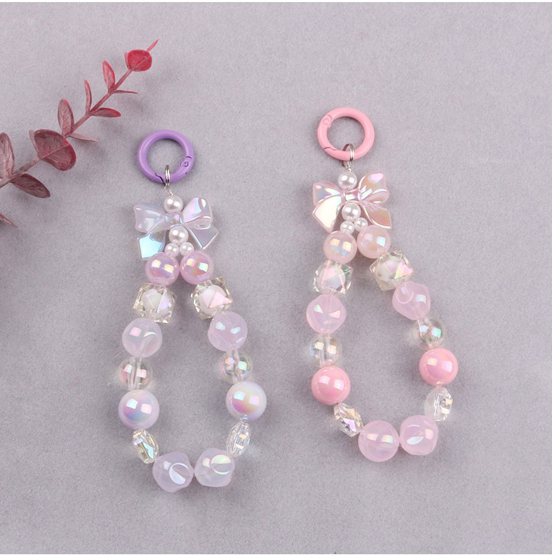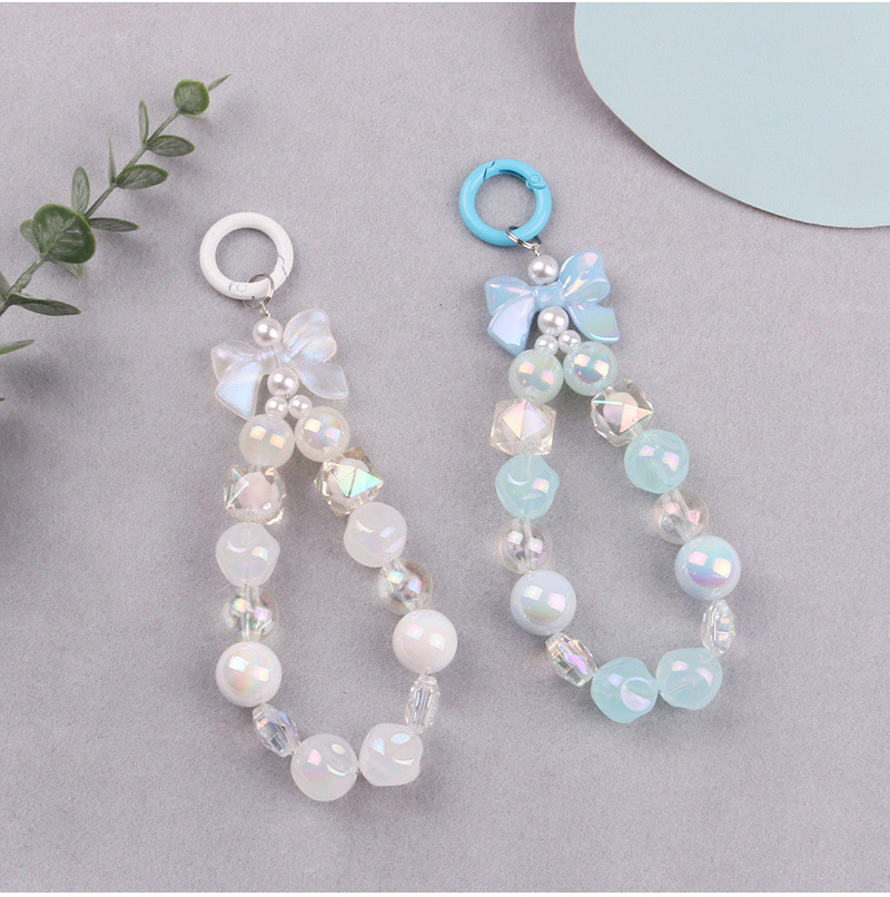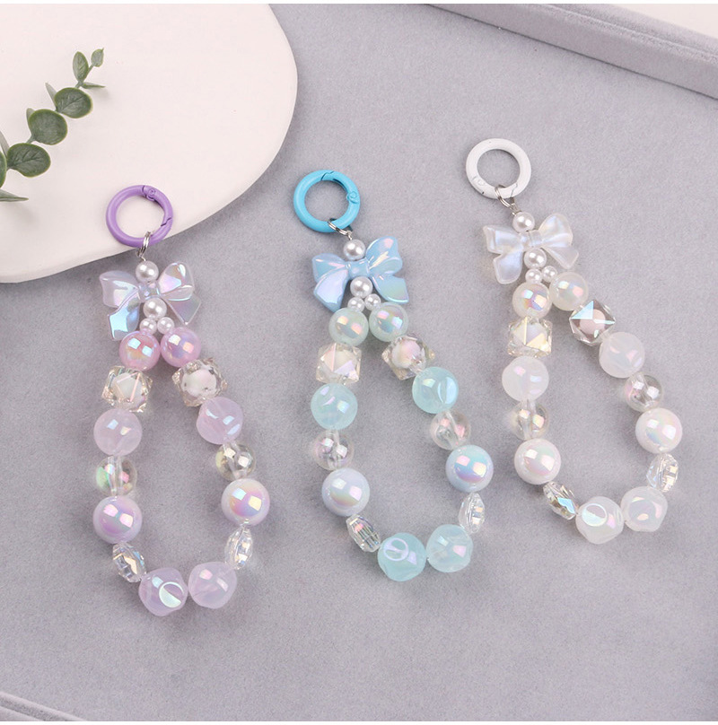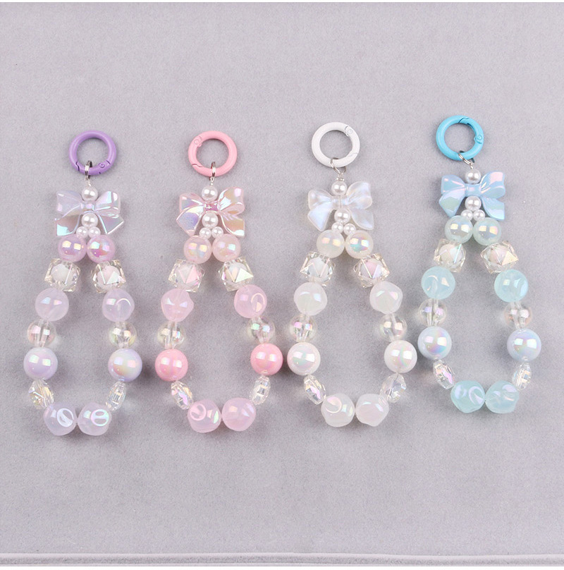Modern Electroplated No-Flower Keychain with Transparent Round Beads and Colorful Butterfly Decoration