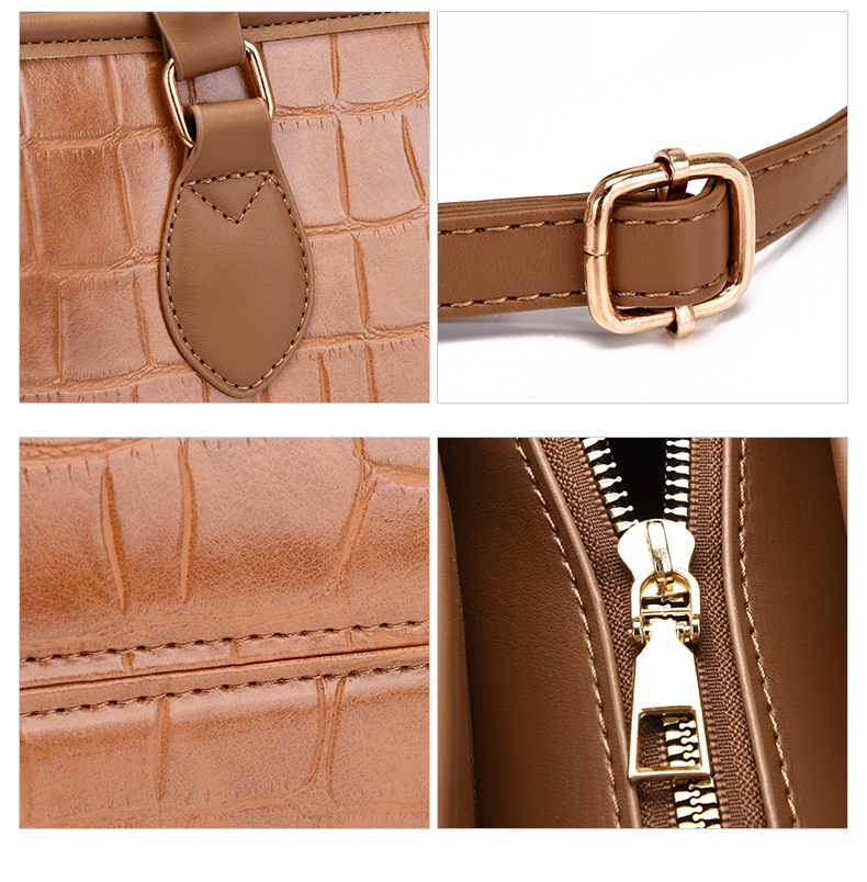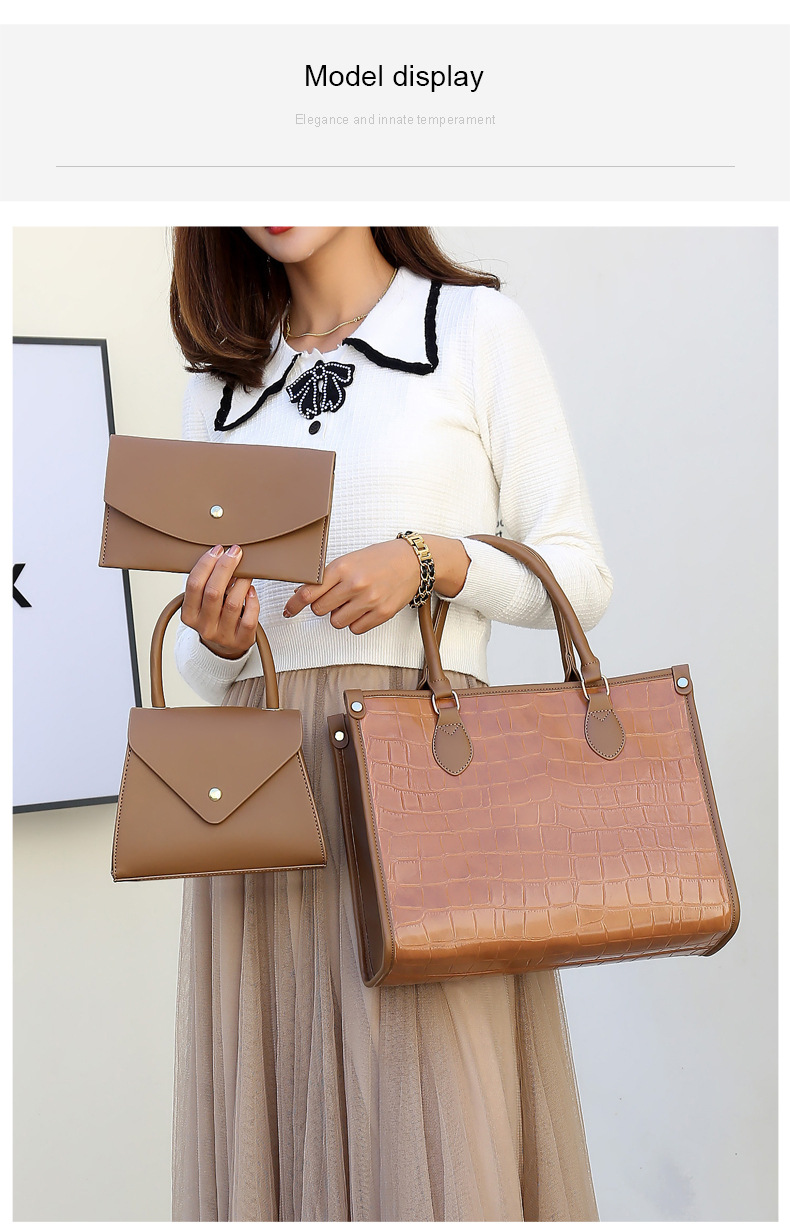 - ["Made of high quality PU material","3-piece set includes handbag, shoulder bag and crossbody bag","Fashionable European and American retro style","Large size for all your daily needs","Zipper closure for easy and secure use"]