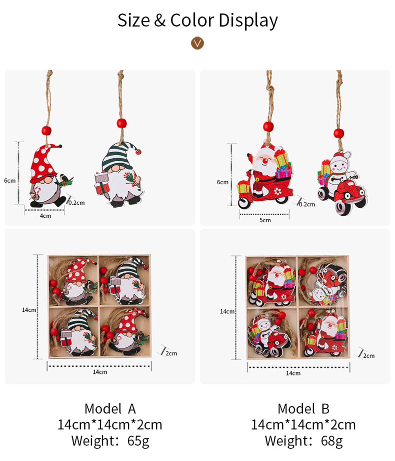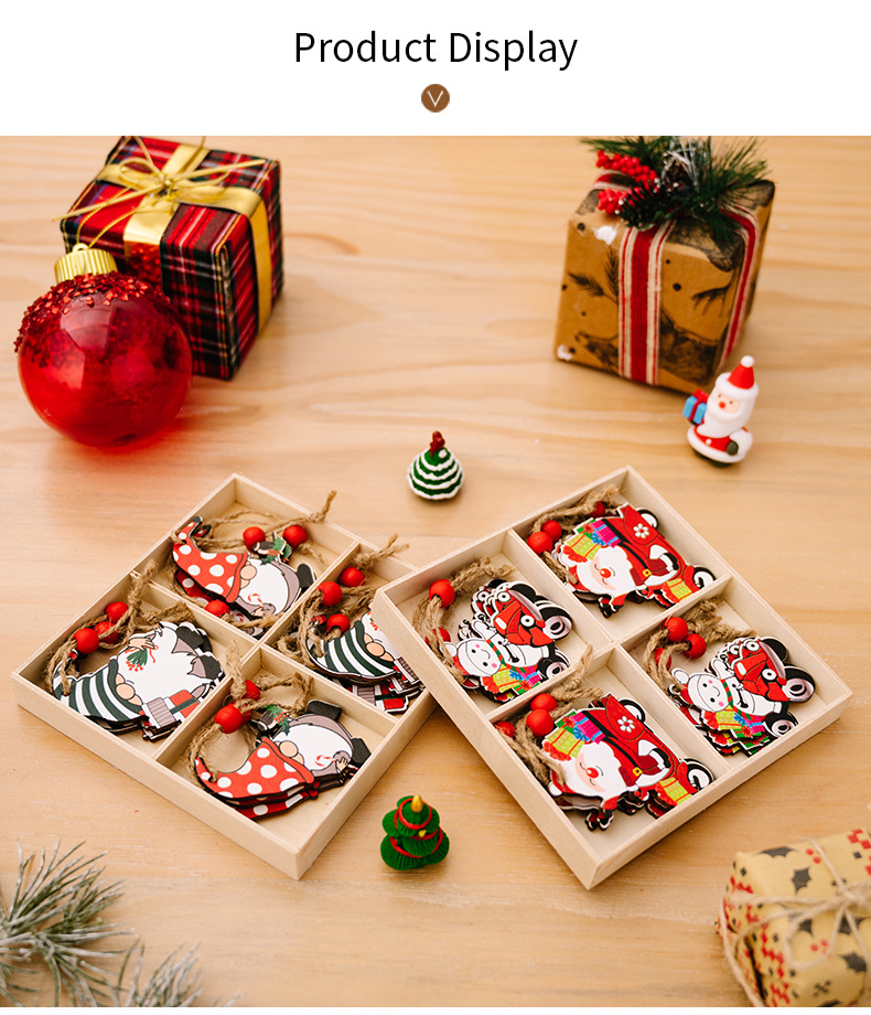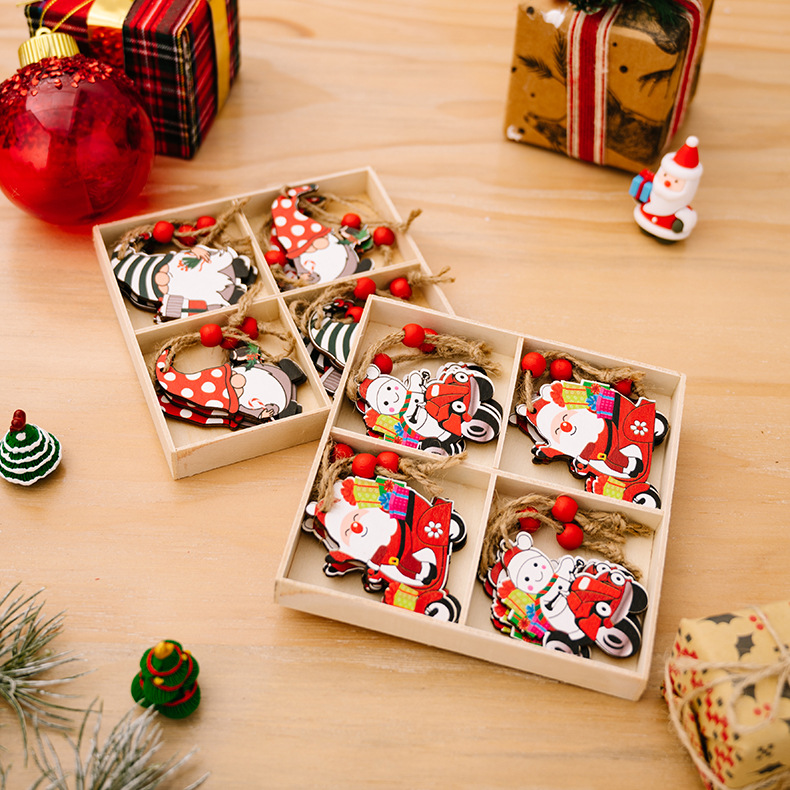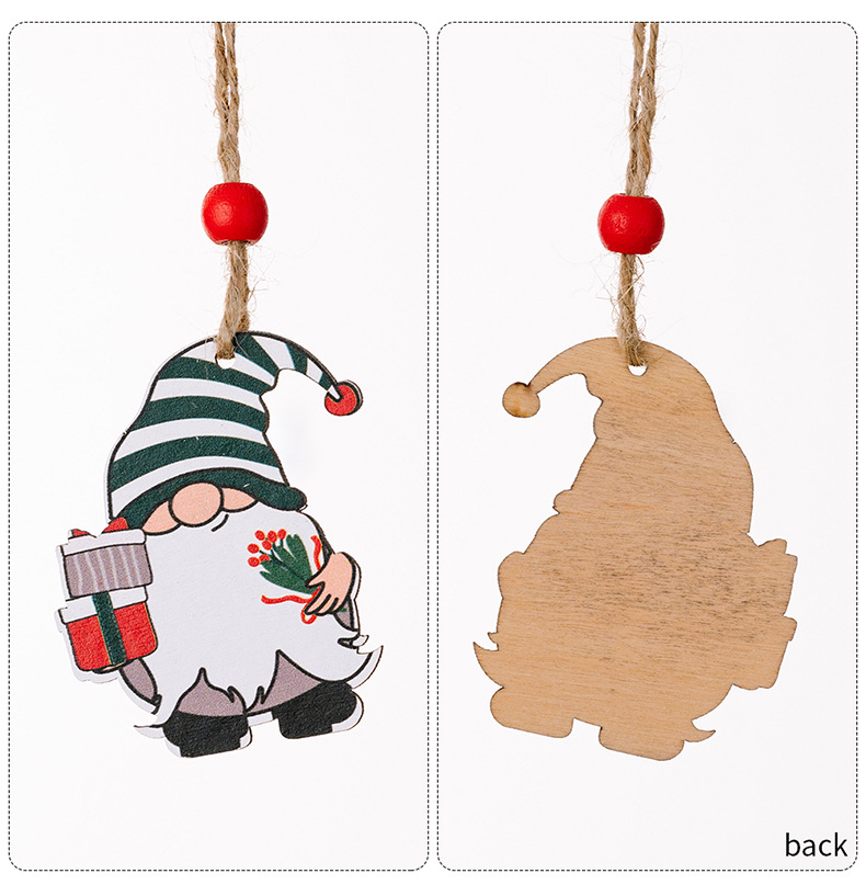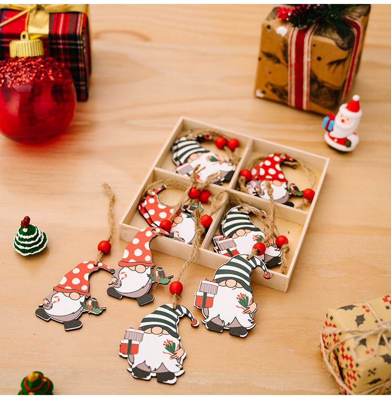 New Christmas Decoration Dwarf Santa Claus Wooden Tree Ornament 4 Grid Cartoon Printed Box