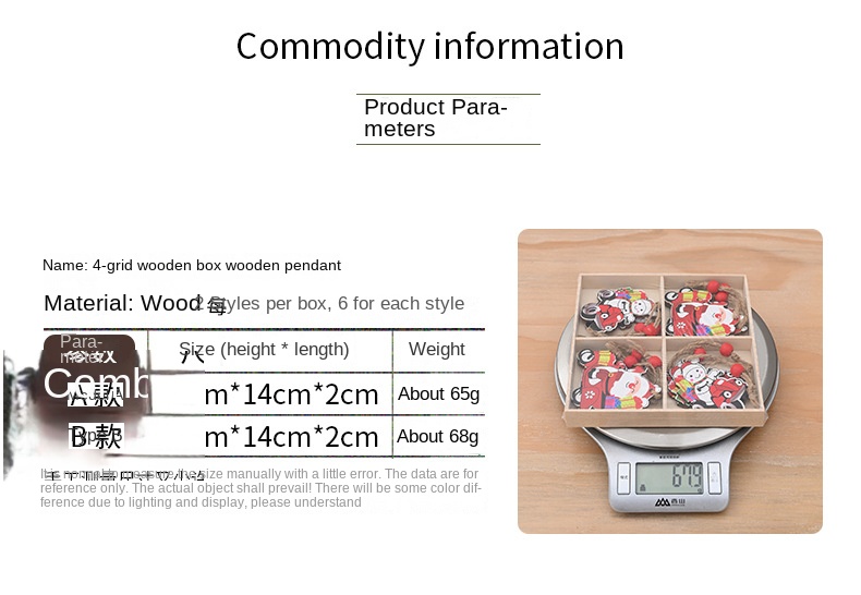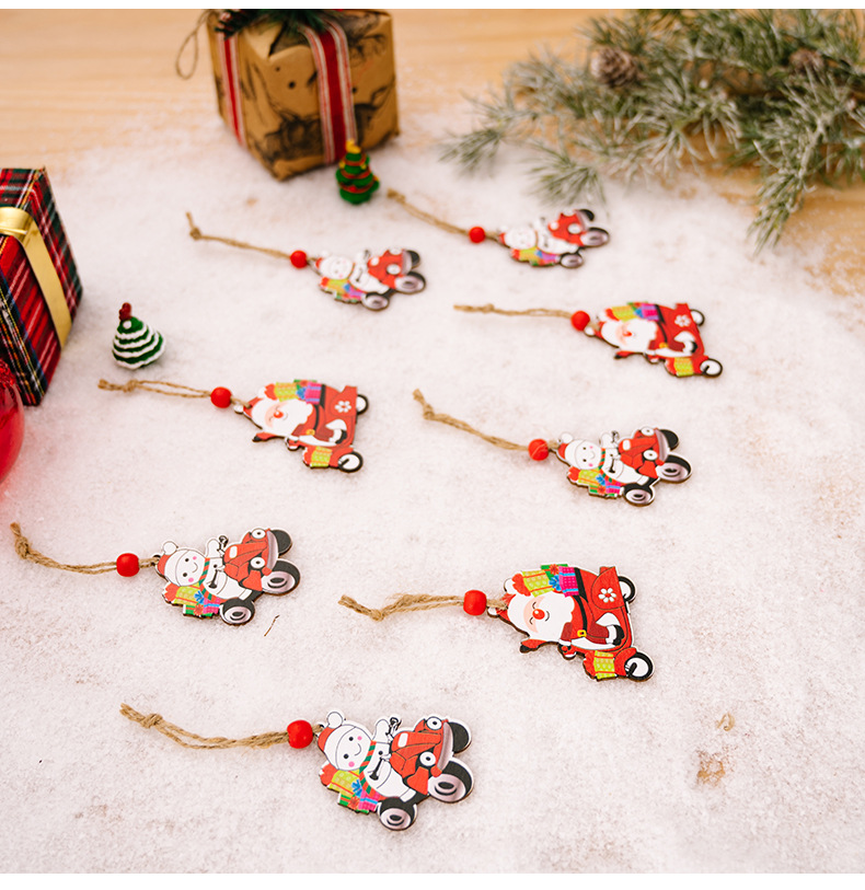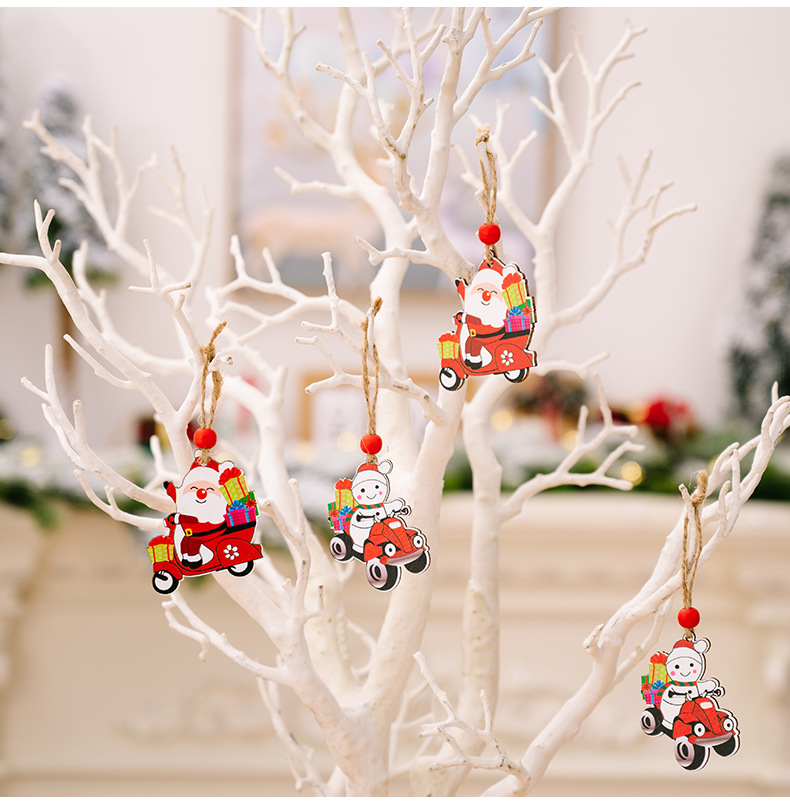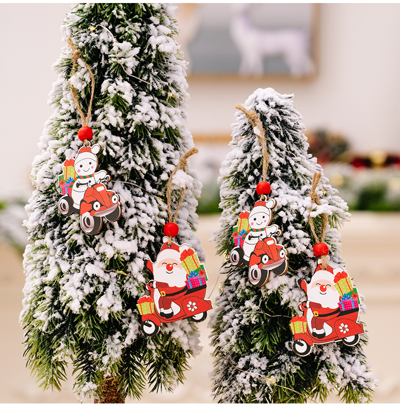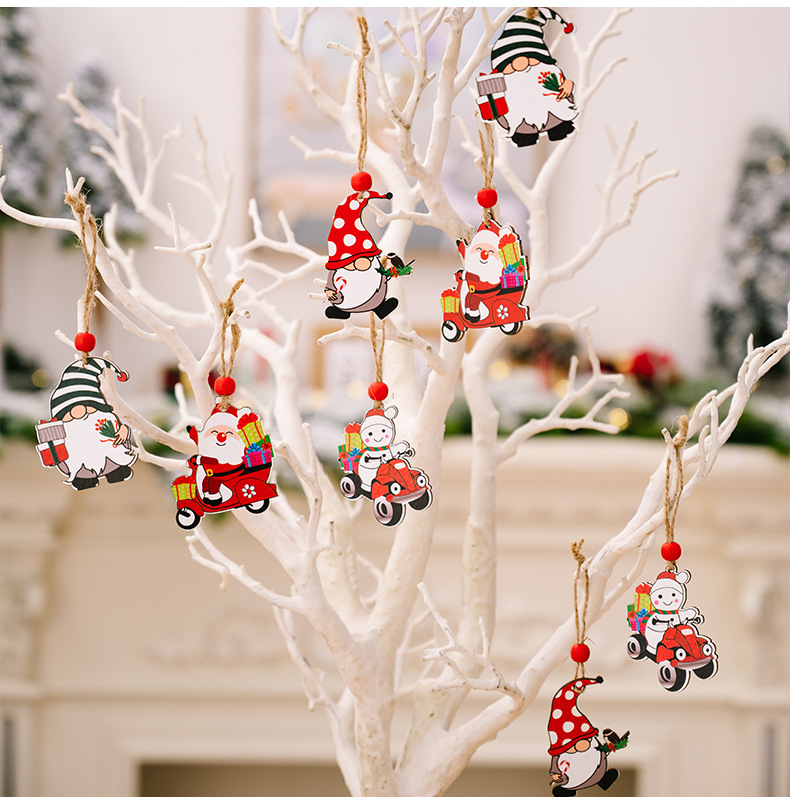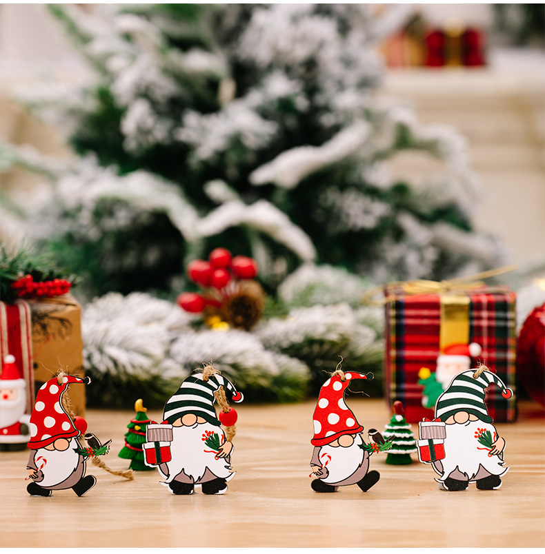 New Christmas Decoration Dwarf Santa Claus Wooden Tree Ornament 4 Grid Cartoon Printed Box