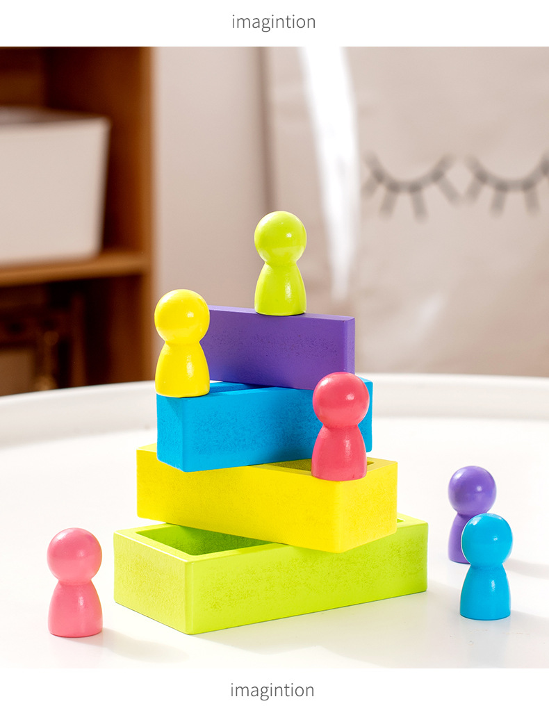 Wooden Rainbow Building Blocks for Children Ages 3-6