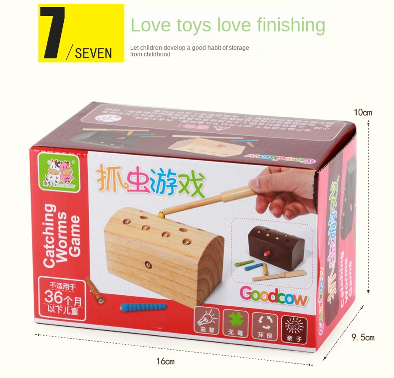 Montessori Children's Educational Wooden Magnetic Catch Insect Puzzle Game for Parent-child Training Hand-eye Coordination Memory Color Matching