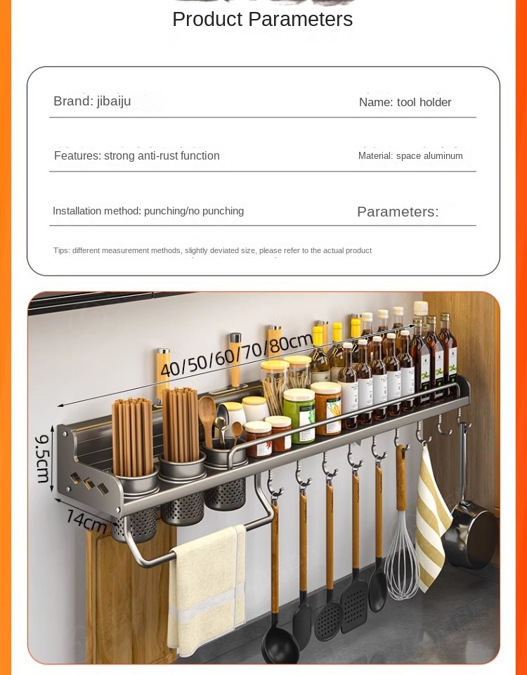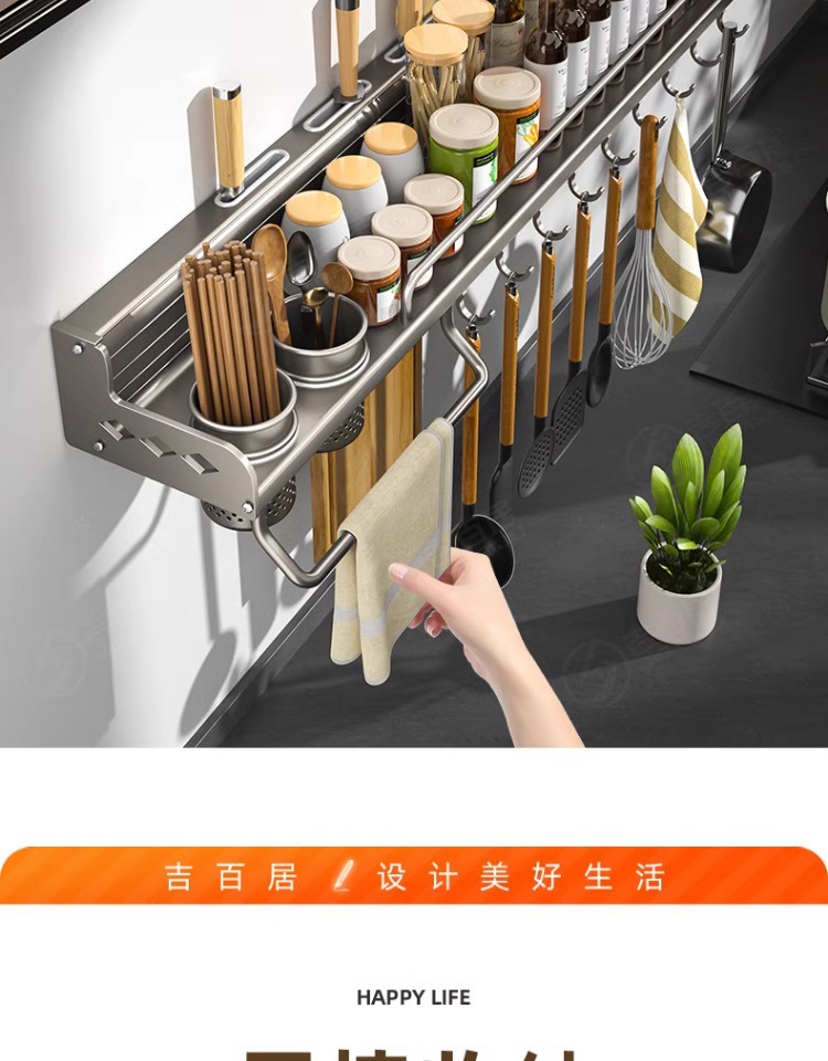 Modern Simple Kitchen Wall Mounted Multi-Functional Storage Rack for Cutlery, Condiments and Other Kitchen Supplies