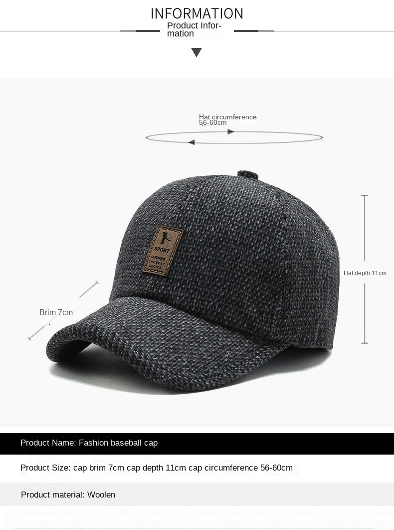 Men's Winter Duckbill Hat with 81%-95% Fabric, English Letters, Round and Short Brim, Windproof, Warm, Breathable, Sun Protection, Anti-Dust