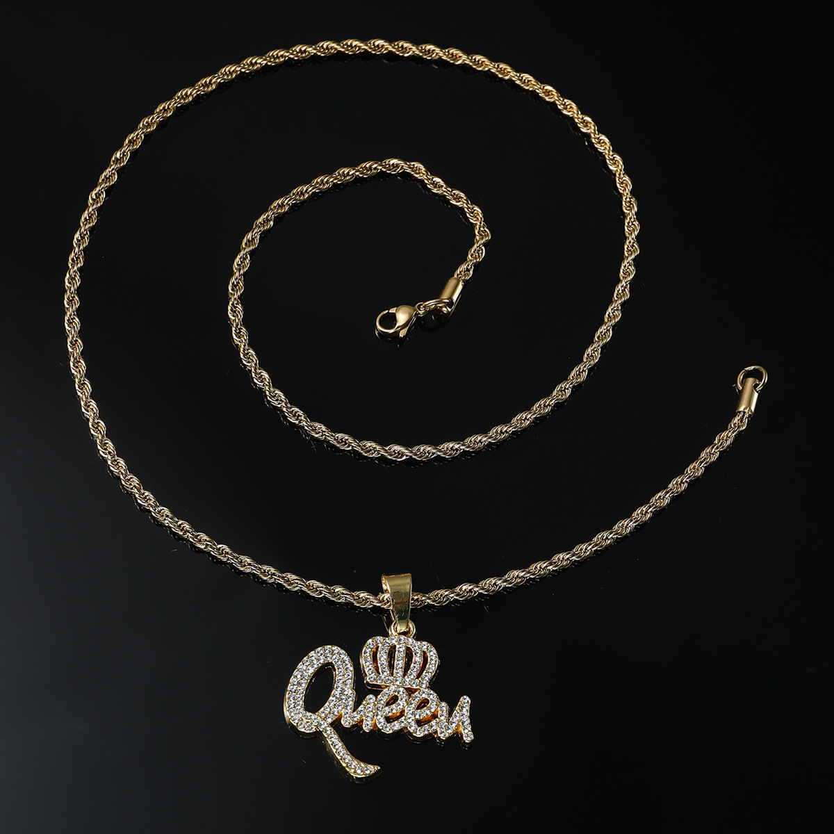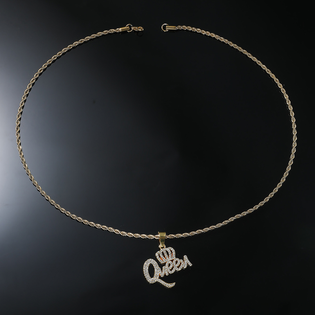 Fashionable Queen Letter Necklace with Rhinestone Embellishment
