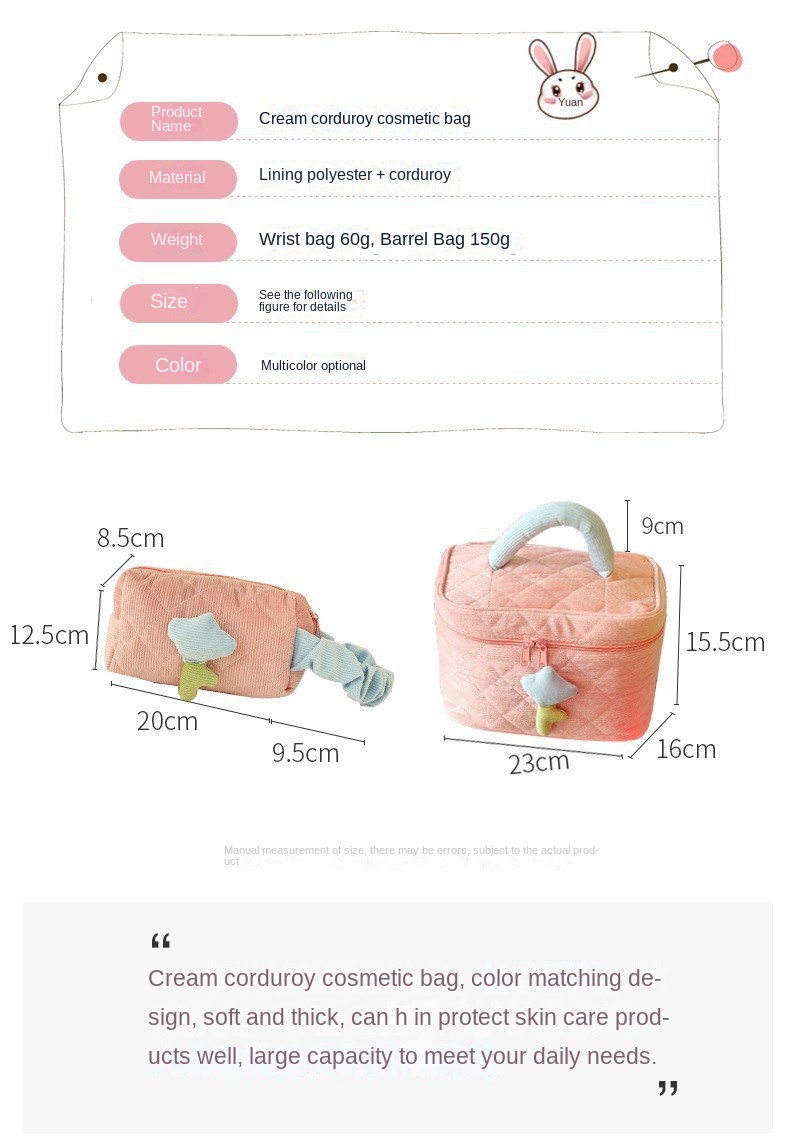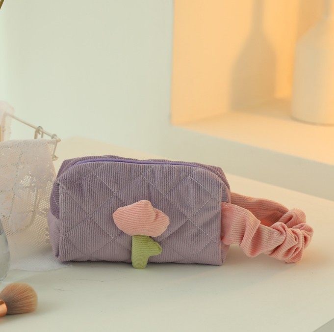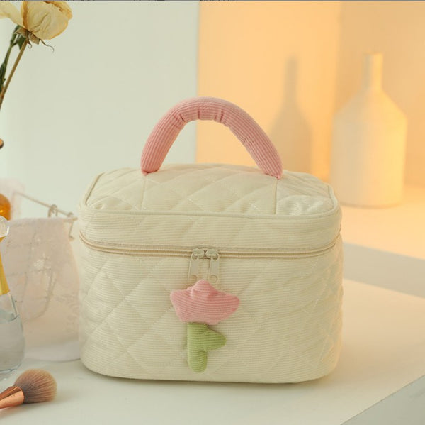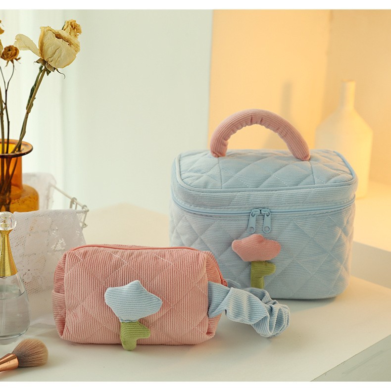 Ins Style Flower Embroidery Makeup Bag with High Quality Lamp Yarn, Large Capacity for Travel and Storage