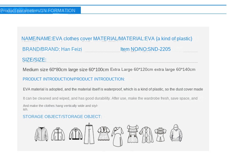 EVA Modern Simple Dustproof Clothes Bag for Home Use, Waterproof and Washable