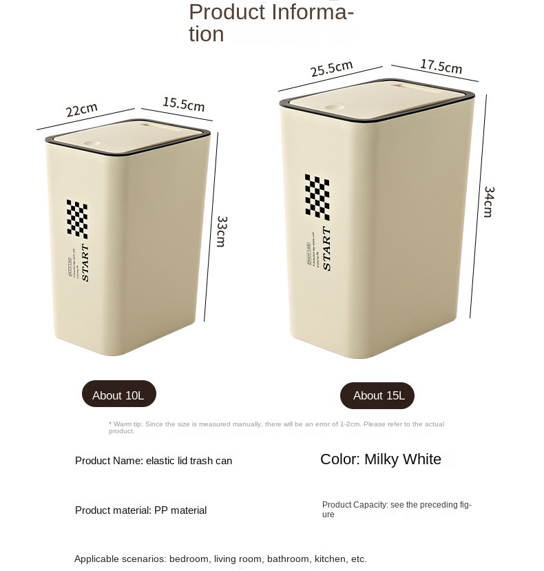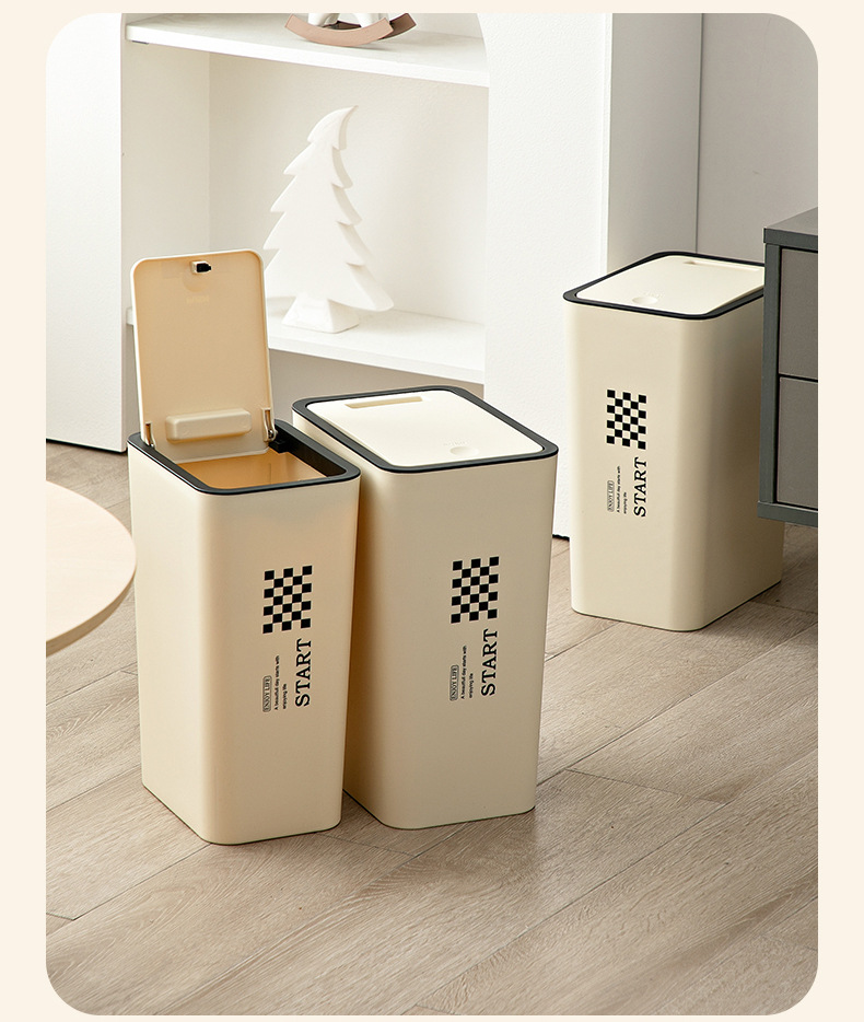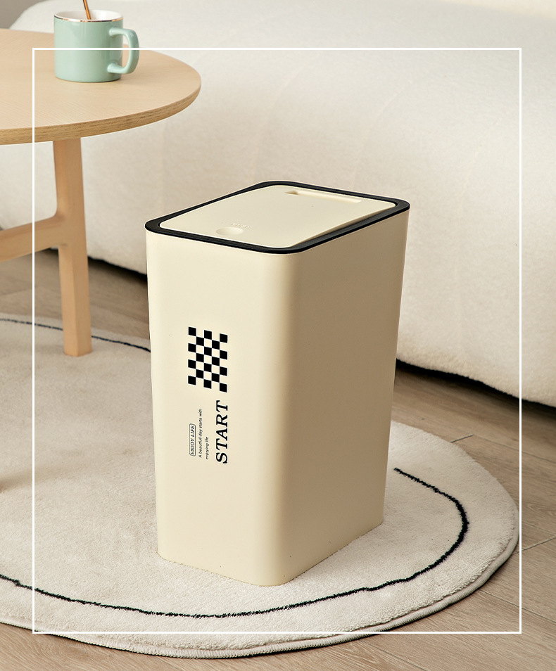 Large Household Trash Can with Lid, 12L Capacity, Square Shape, 100% New Material, Pressure Type Lid, for Home Use