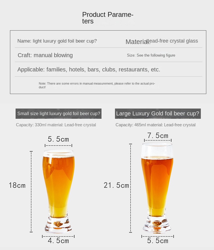 Luxury Crystal Beer Mug with Gold Plating and Handcrafting, 301-400ml