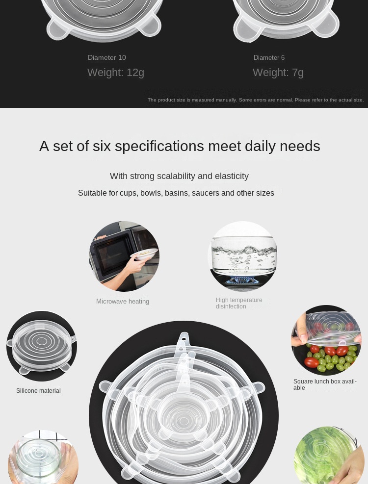 6 Pieces Round Silicone Fresh Cover for Home Use with Transparent Sealing Film