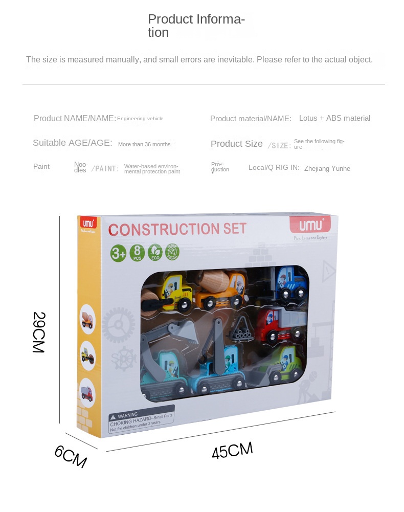 Wooden Toy Construction Vehicle Set - Excavator, Bulldozer, Forklift - Boys Age 3-6