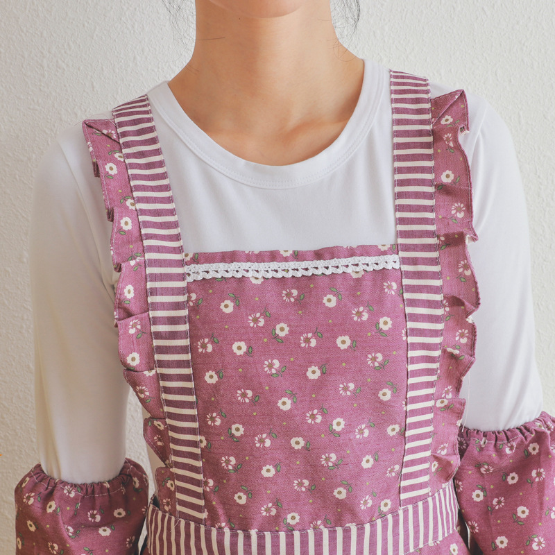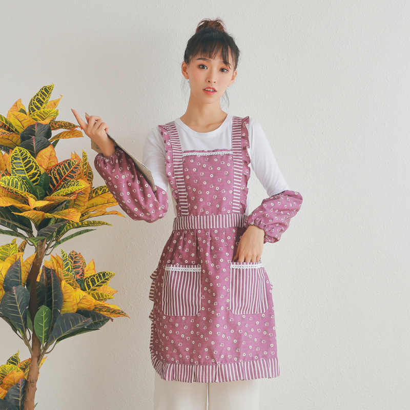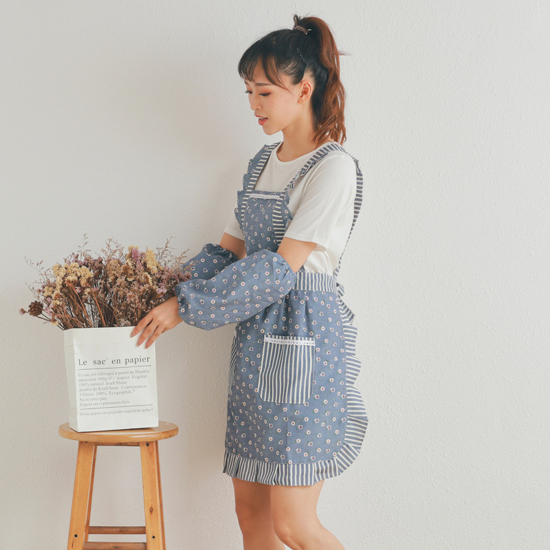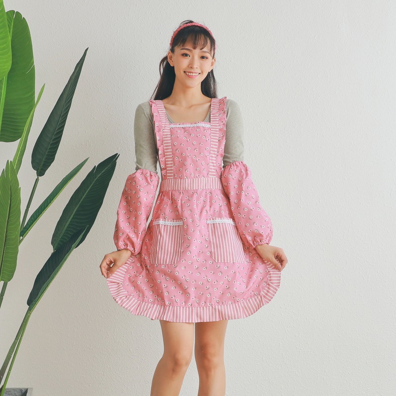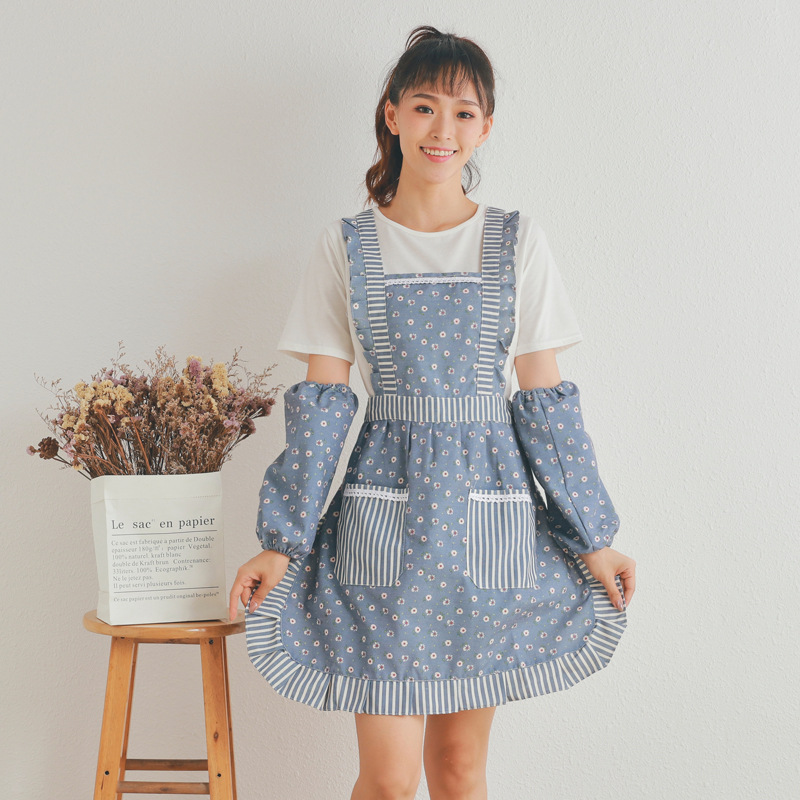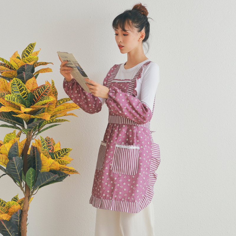 Korean Style Apron with Belt for Dustproof and Breathable Kitchen Cooking