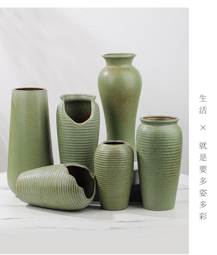 Green Glazed Potted Flower Pot - Vintage Style - No Hole - Normal Package - Non-Gift and Non-IP Item