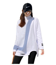 Women's Double-Sided Fleece T-Shirt, Long Sleeve, Loose Fit, 90%-95% Cotton Blend, Casual, Korean Style, Mid Length, Half High Collar, Ripped Detail