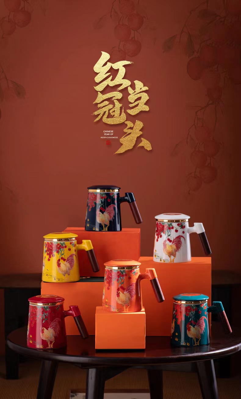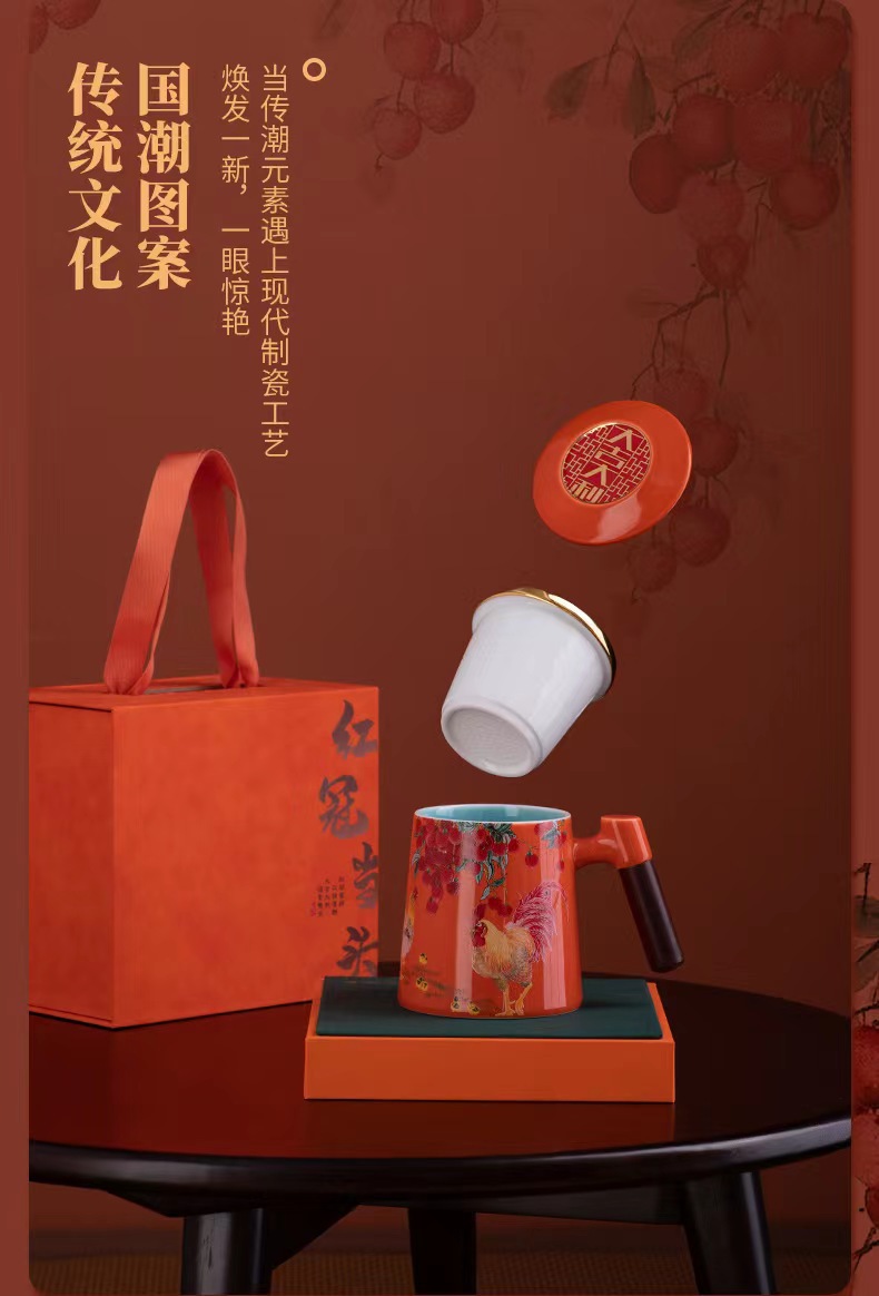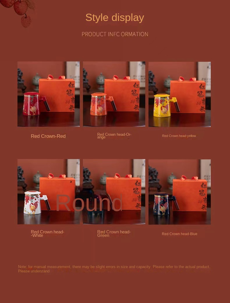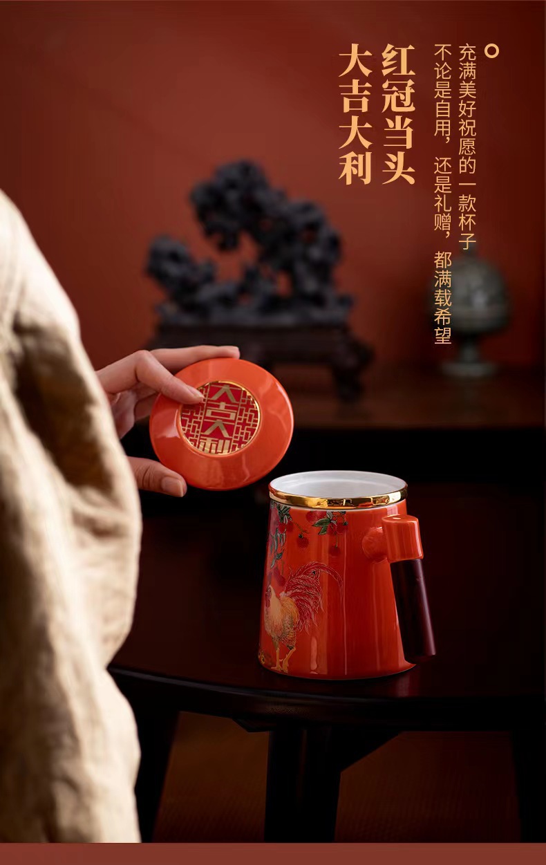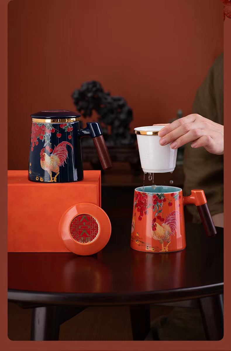301-400ml Chinese Style Ceramic Office Tea Mug with Lid Filter for Personal Drinking
