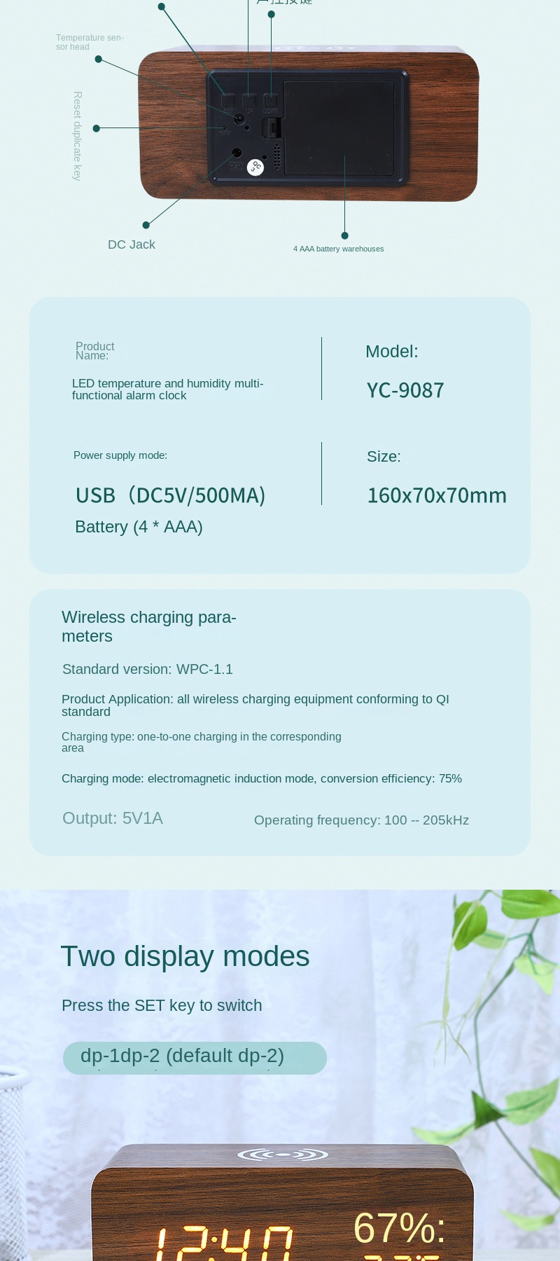 Creative Wooden LED Clock with Multi-Functional Alarm Clock, Temperature Measurement, and 10,000-Year Calendar