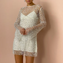 Two-piece Pearl Transparent Mesh Women's Dress (Size: S/M/L)