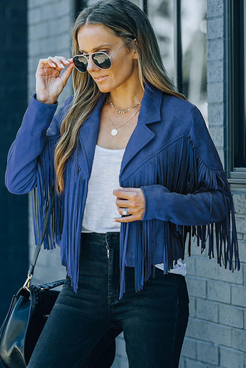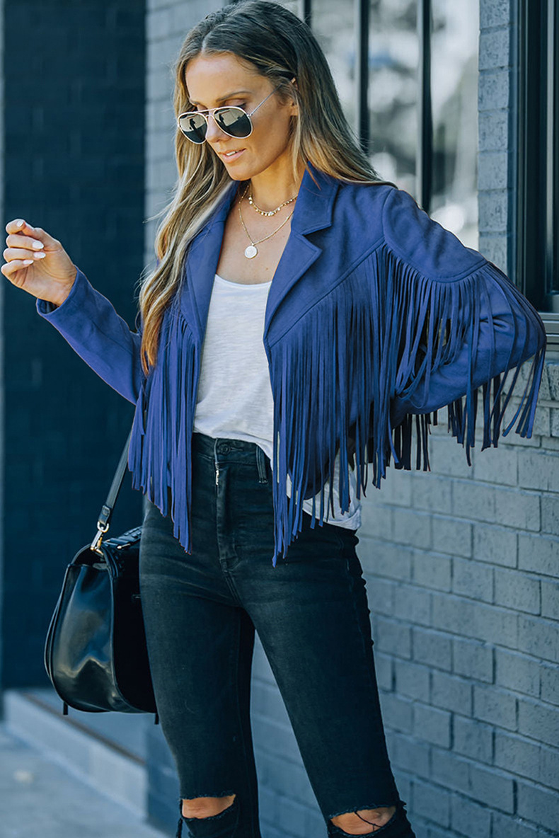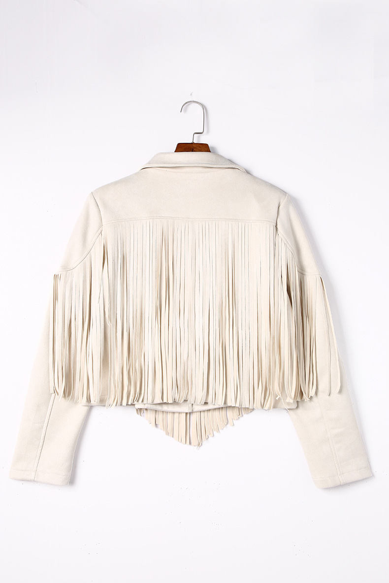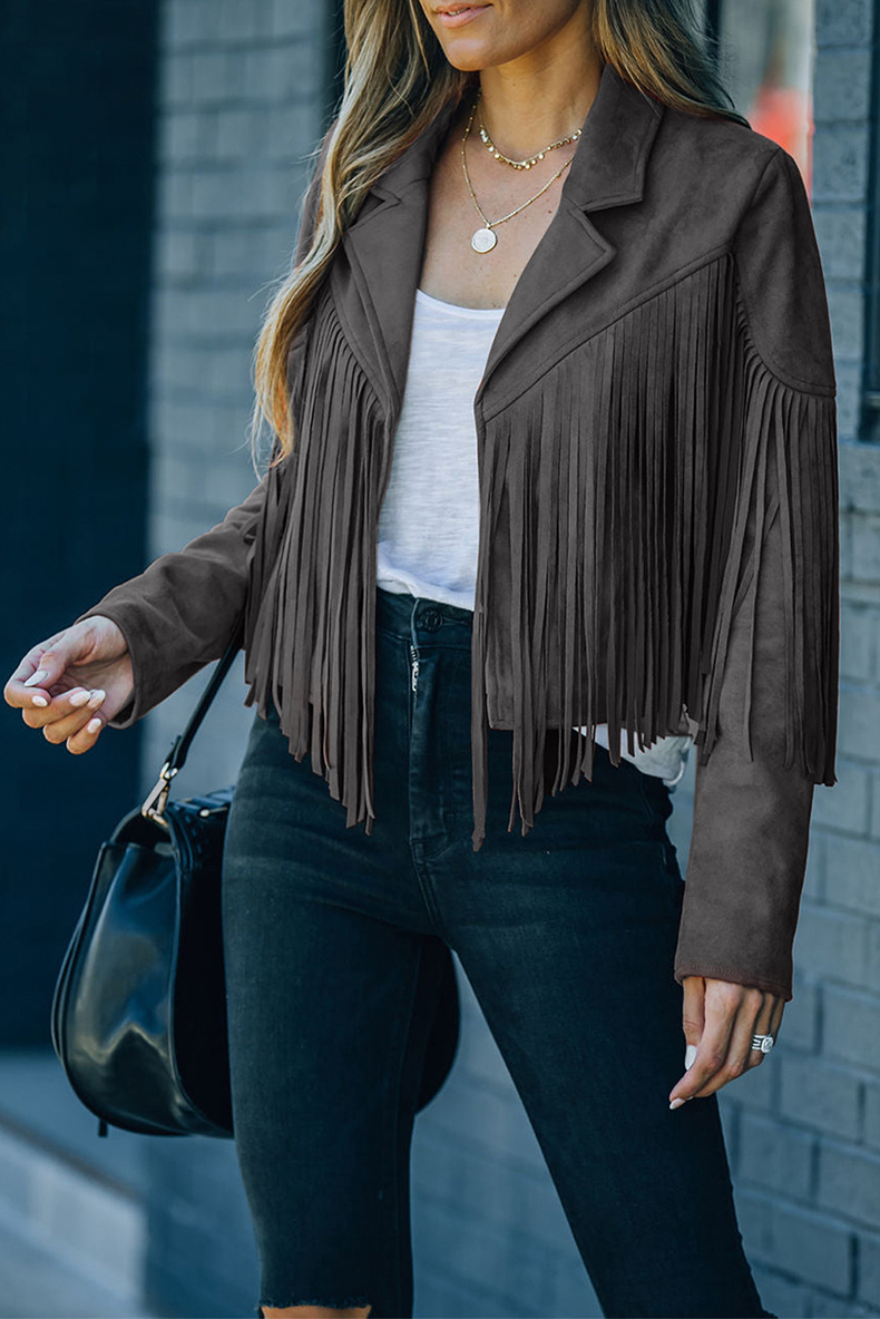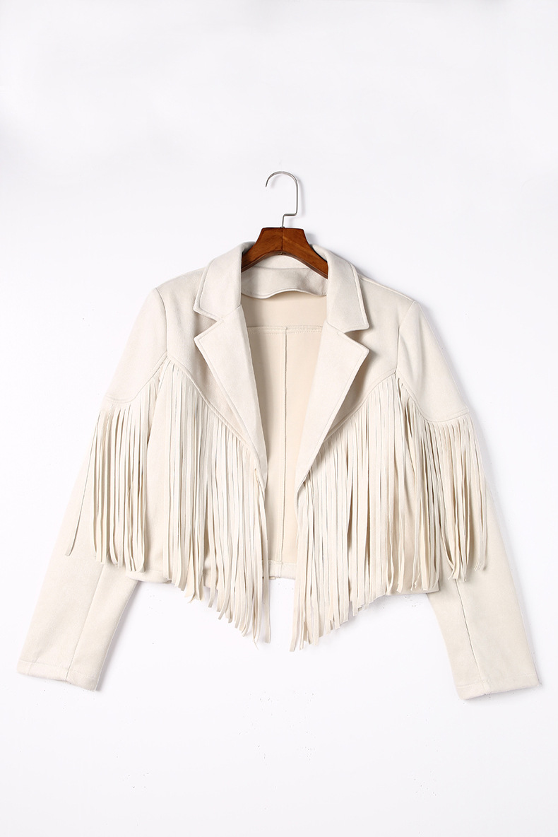 Women's Fashionable Turn-down Collar Jacket with Tassels and Flowing Style, 90%-95% Polyester, 30% Cotton