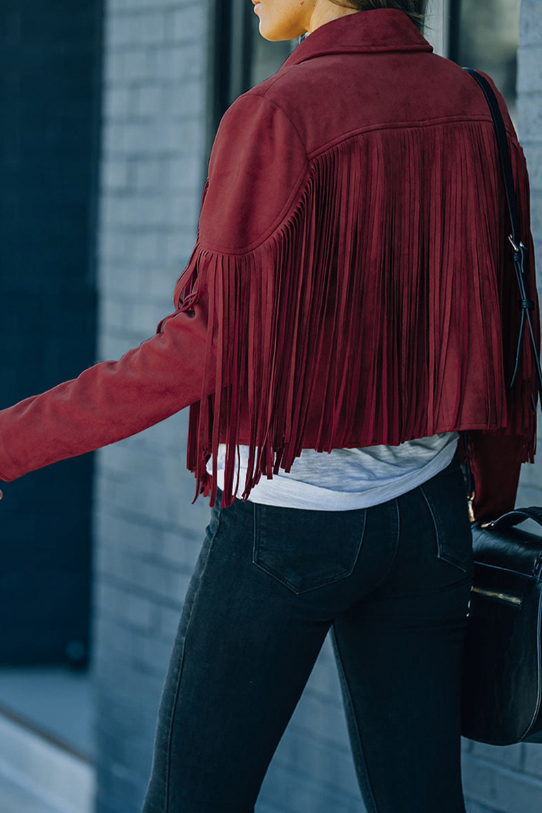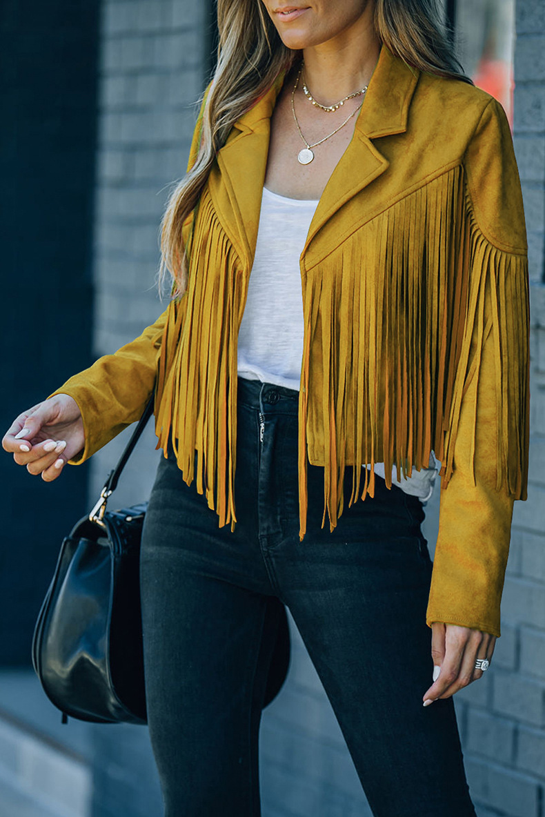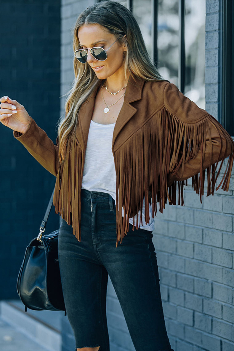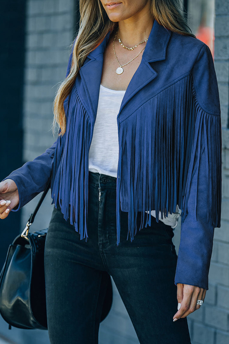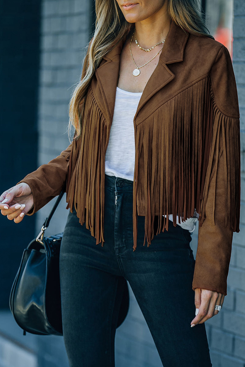 Women's Fashionable Turn-down Collar Jacket with Tassels and Flowing Style, 90%-95% Polyester, 30% Cotton