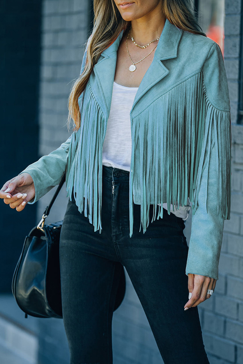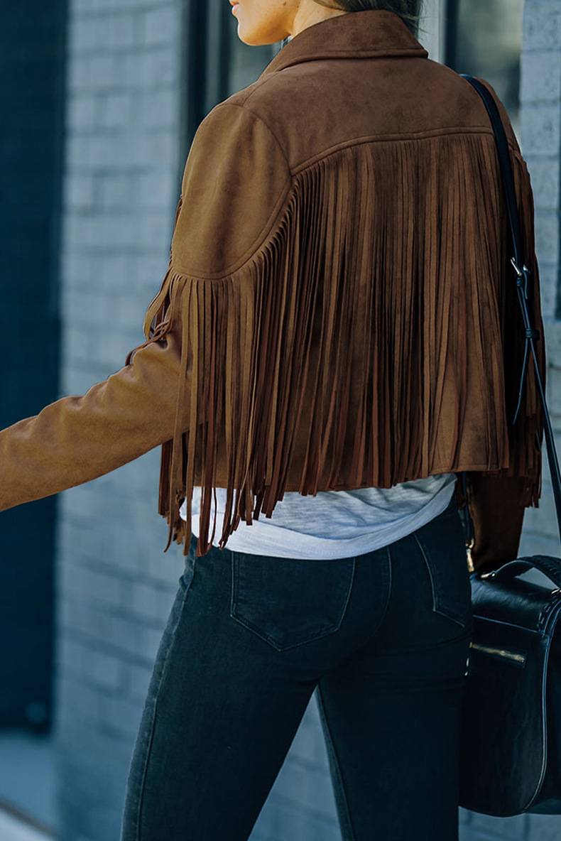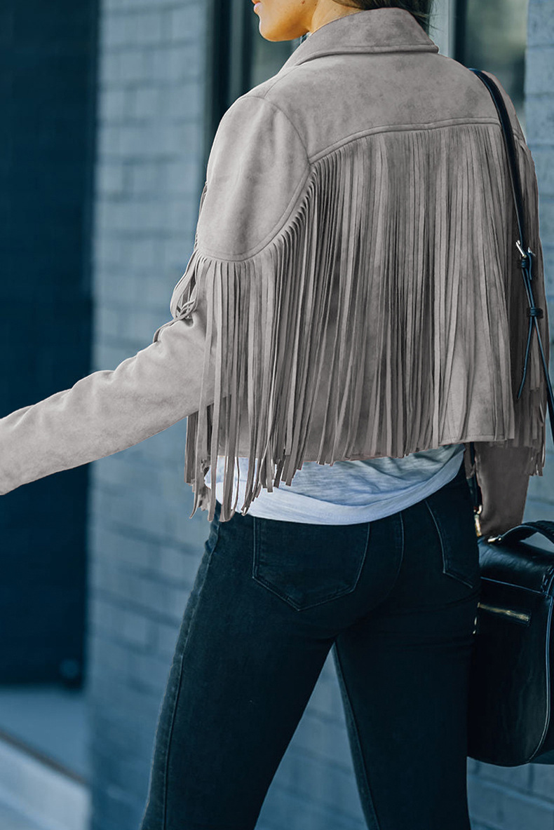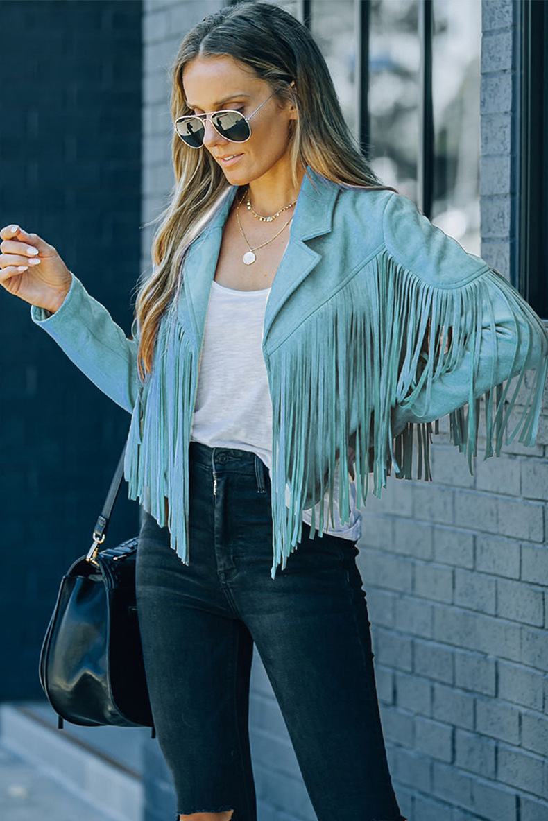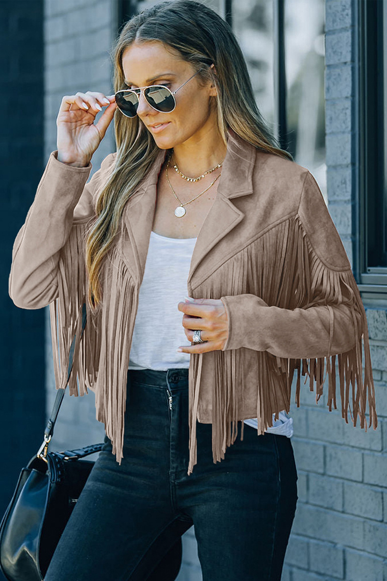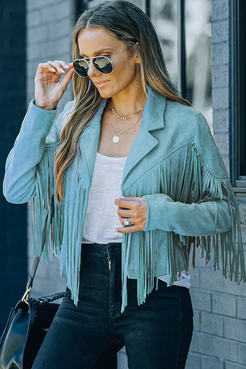 Women's Fashionable Turn-down Collar Jacket with Tassels and Flowing Style, 90%-95% Polyester, 30% Cotton