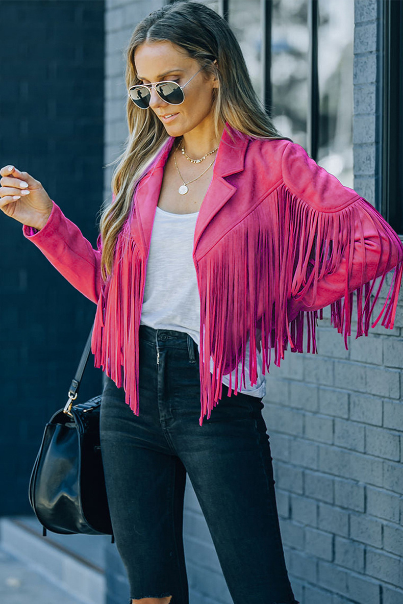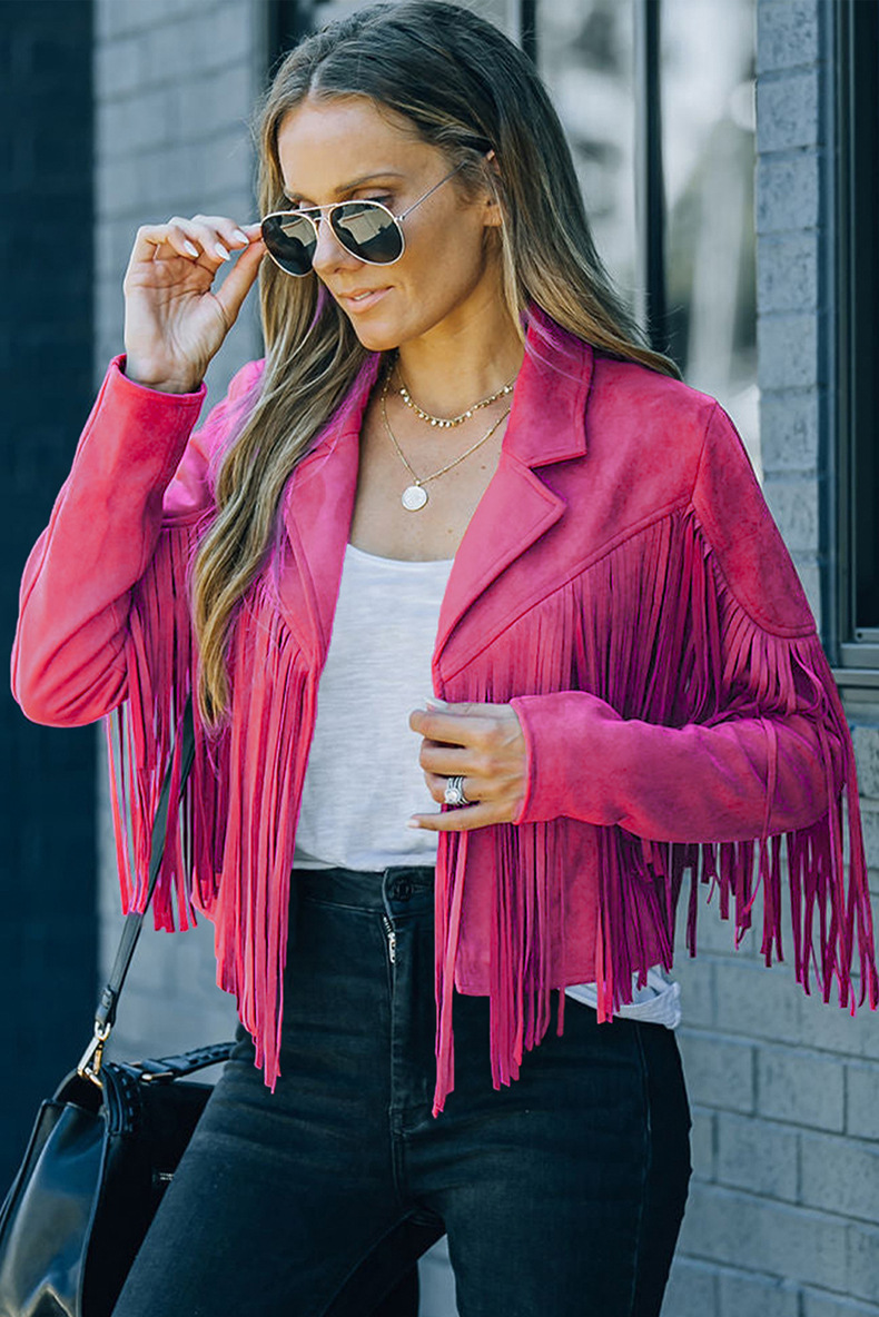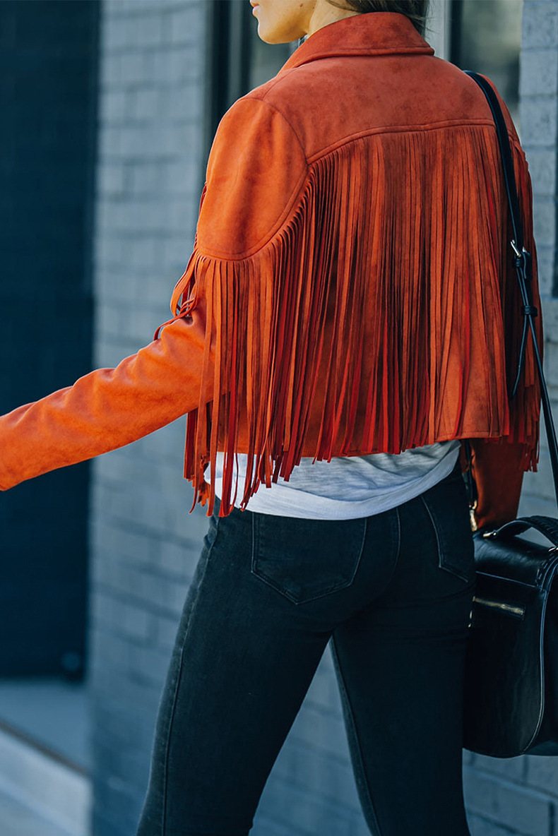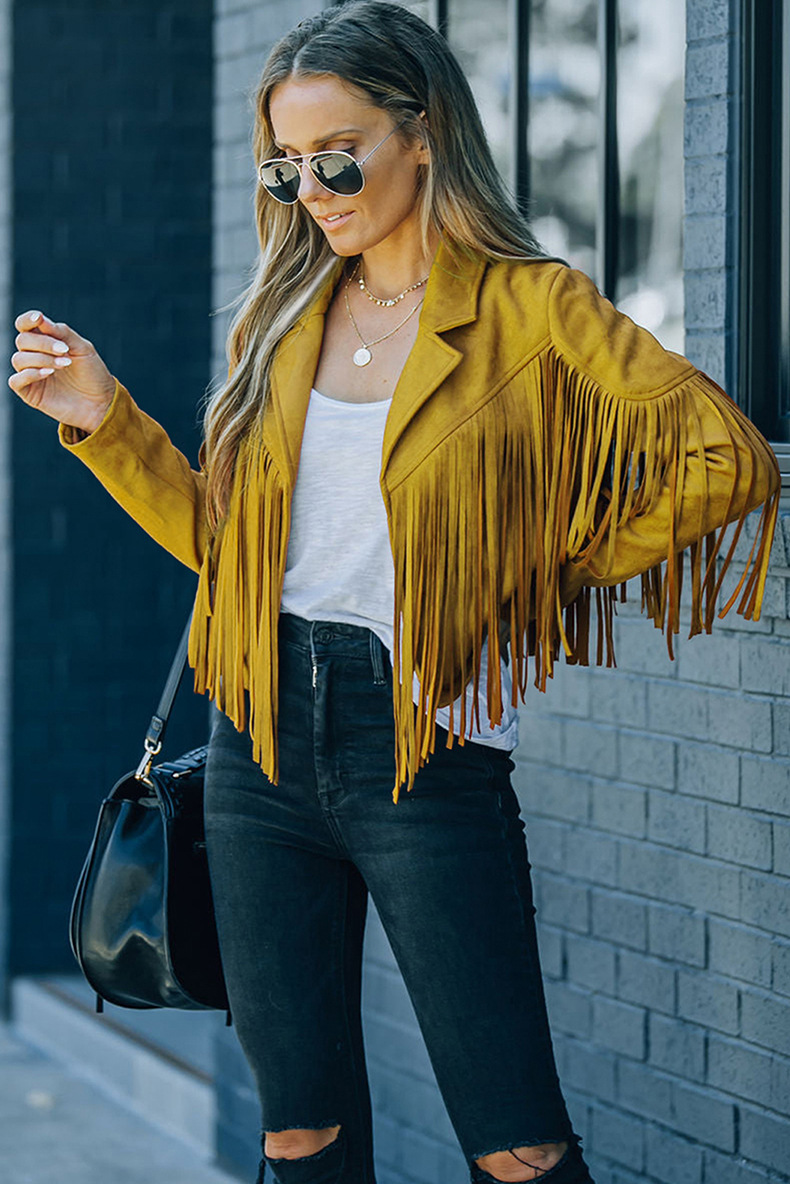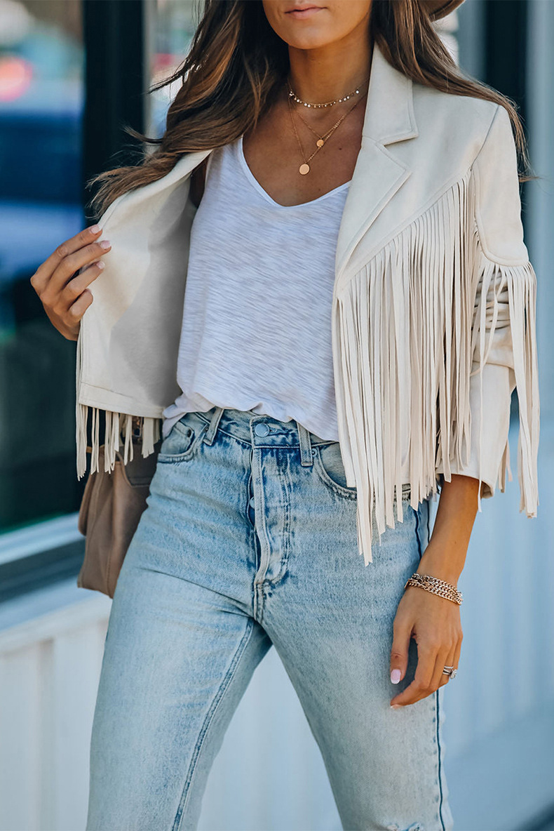Women's Fashionable Turn-down Collar Jacket with Tassels and Flowing Style, 90%-95% Polyester, 30% Cotton
