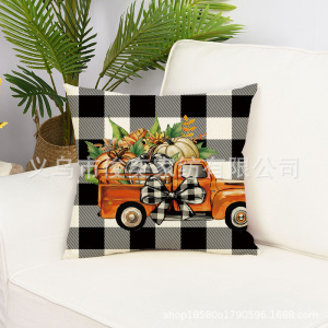 Autumn Thanksgiving Plaid Pillow Case with 71%-80% Polyester Filling, 45*45cm Size