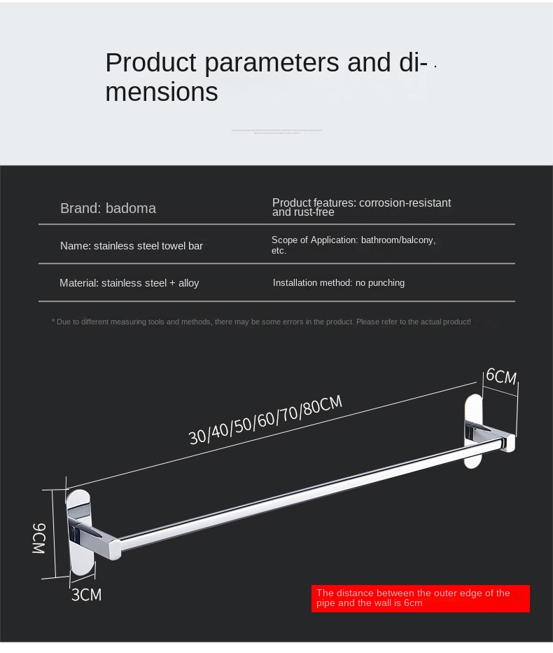 Modern Style Stainless Steel Towel Rack for Bathroom, No Drilling Required