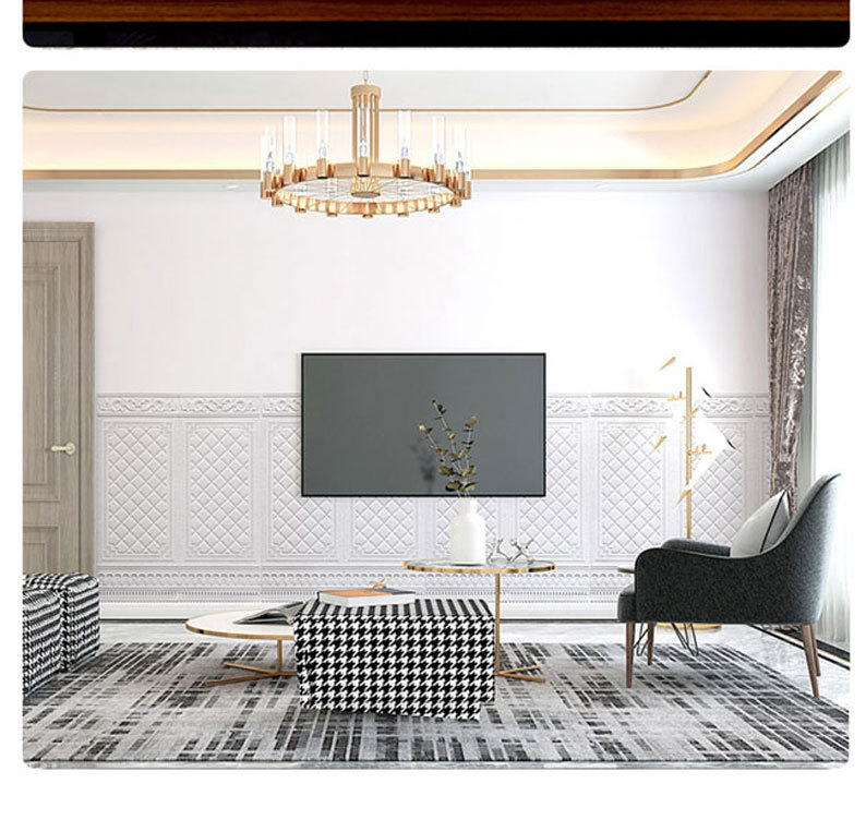 - ["Made of XPE foam material, waterproof, soundproof and dustproof","Chinese style decoration, perfect for living room, corridor, etc.","Easy to install, no need of glue","Various colors and patterns to choose from","1 piece per package, size: 70cm*90cm*5mm"]