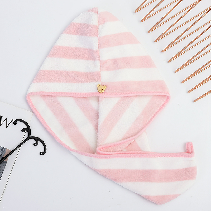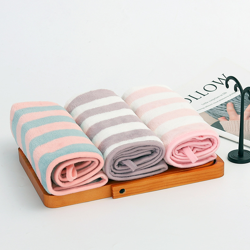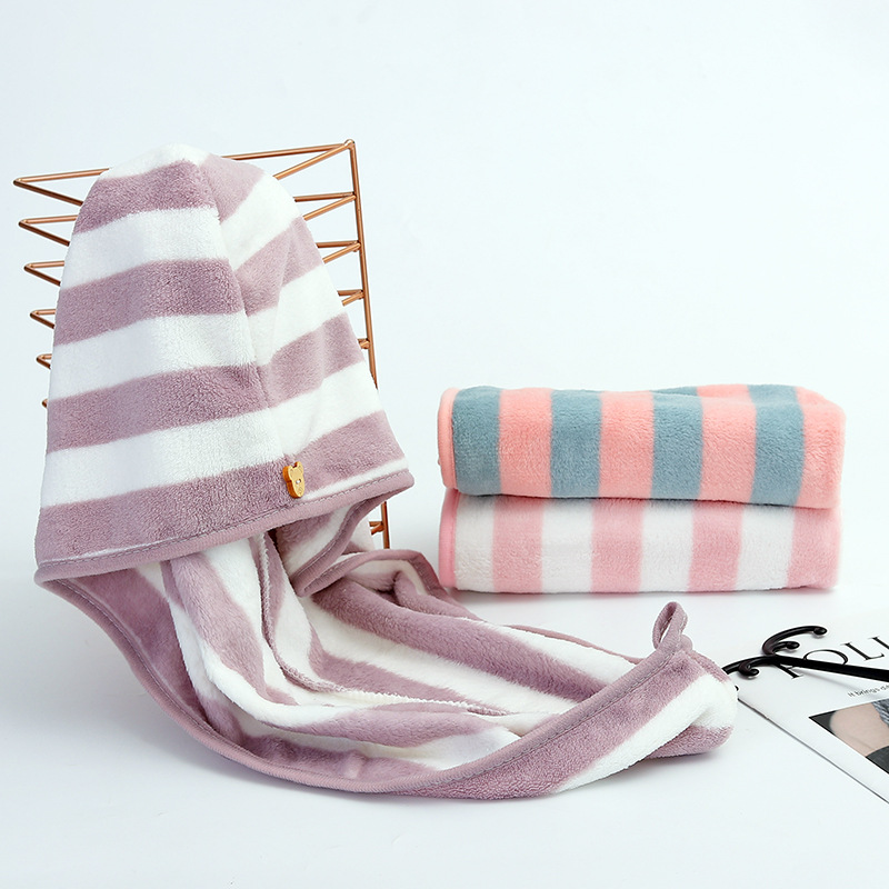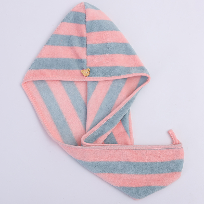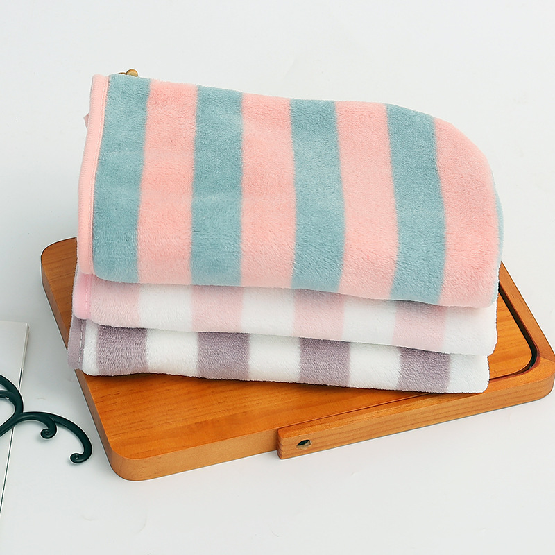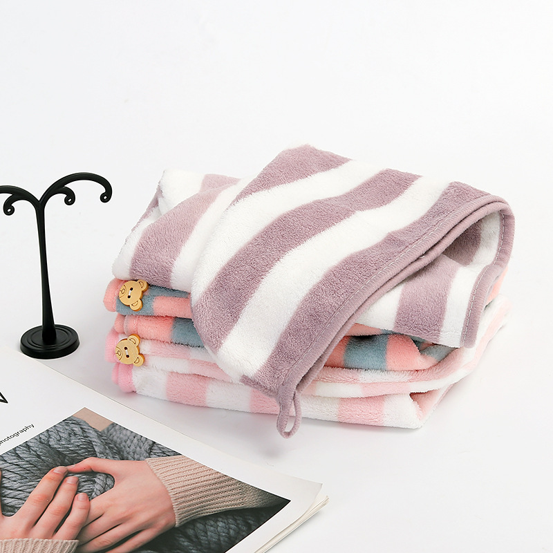Coral Fleece Striped Hair Towel with LOGO Customization, 100g, 60*25cm