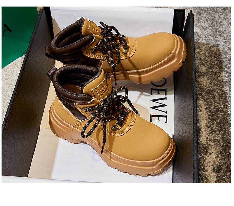 - ["Made of high-quality PU leather material, comfortable and breathable","Thick sole, anti-skid and wear-resistant","Round head design, stylish and fashionable","Lace-up closure, easy to wear and adjust","Suitable for autumn and winter seasons"]