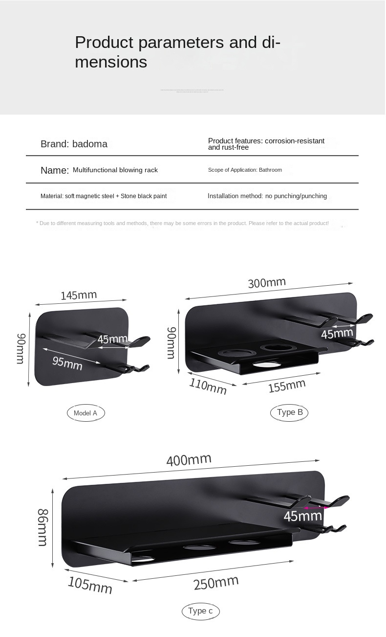 Modern Design Wall Mounted Hair Dryer with 20kg Bearing Capacity and Multiple Types of Wind Outlets
