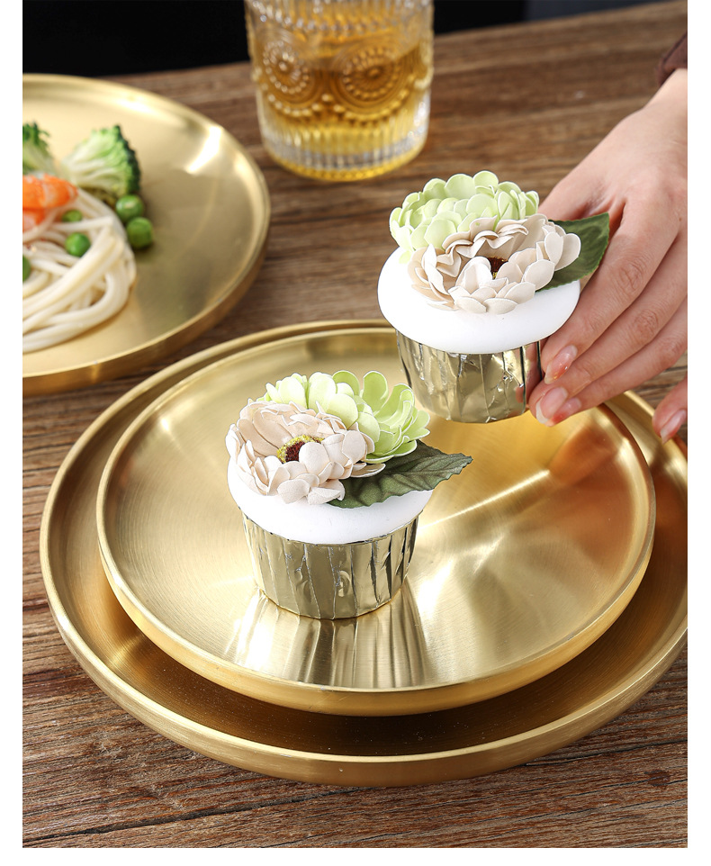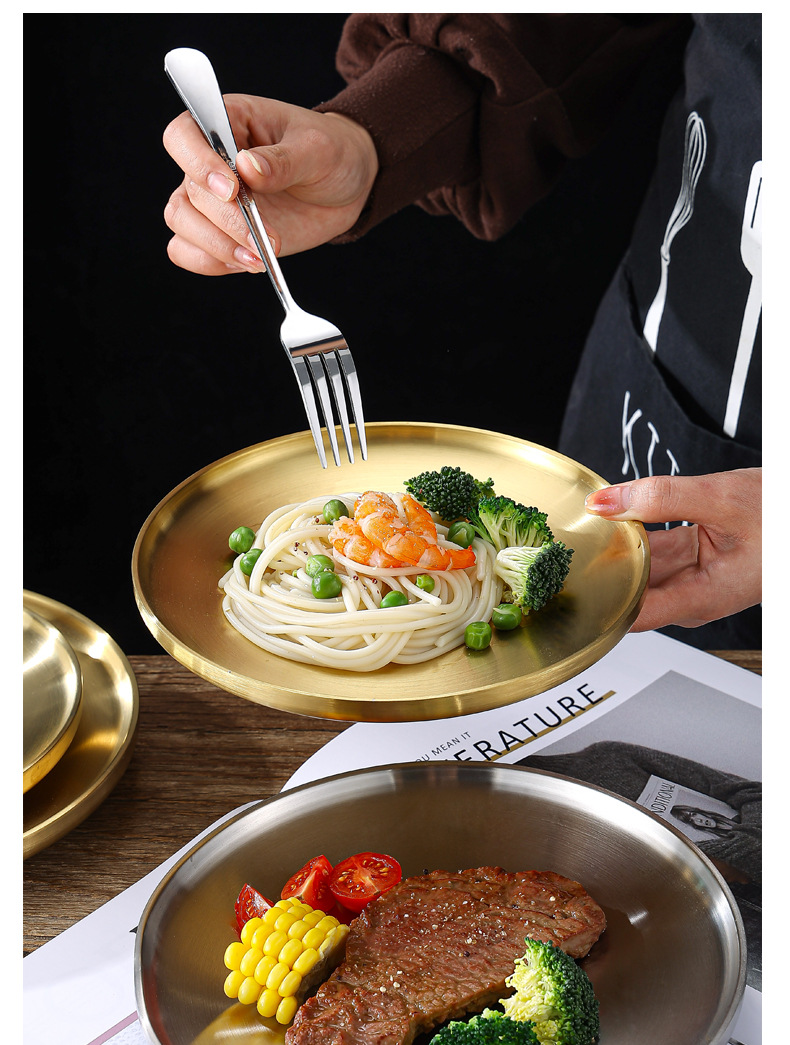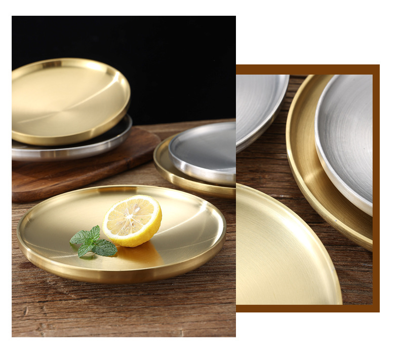304 Stainless Steel Gold Plated Round Plate Bottom Plate Dish Korean Style BBQ Plate