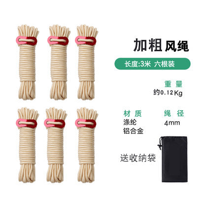 4mm Outdoor Tent Windproof Rope with Reflective Camping Rope Adjustment Rope for Tent Pole Fixation