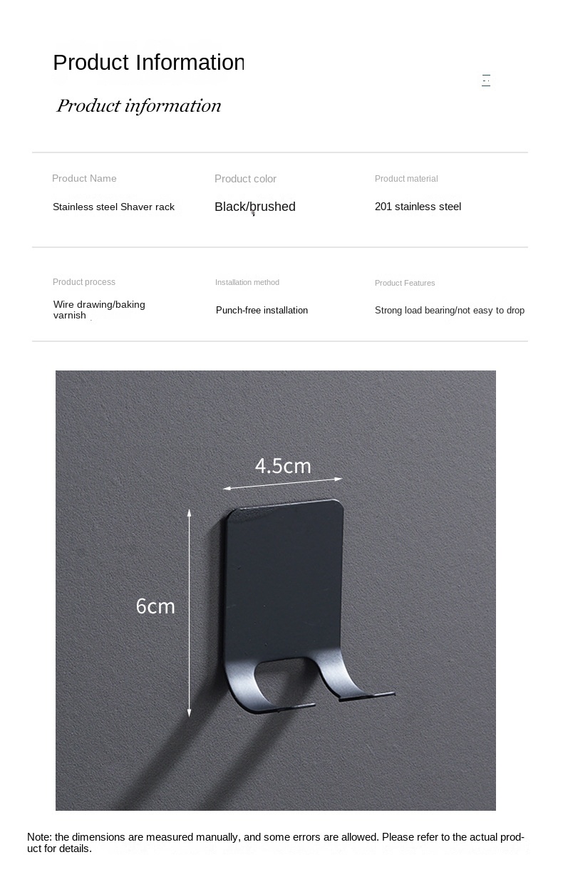 Modern Stainless Steel Wall Mount Shaver Rack with No Drilling Required for Bathroom, Kitchen, Living Room
